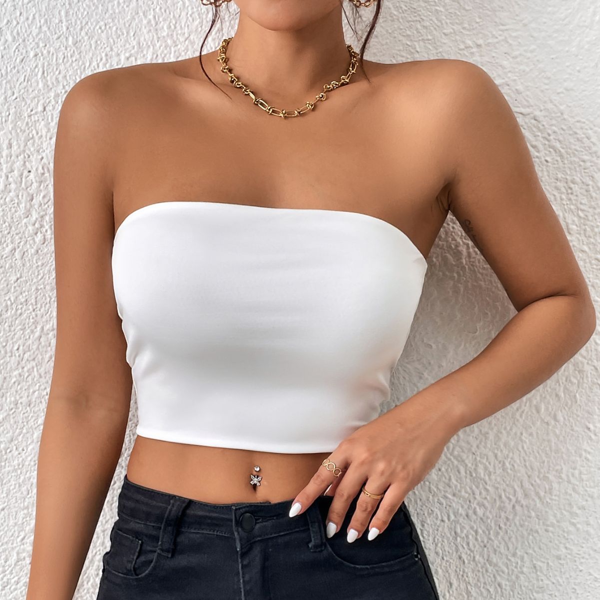 Sexy Cropped Tube Top Strapless Vest Outer Wear Tank Top Vest for Women