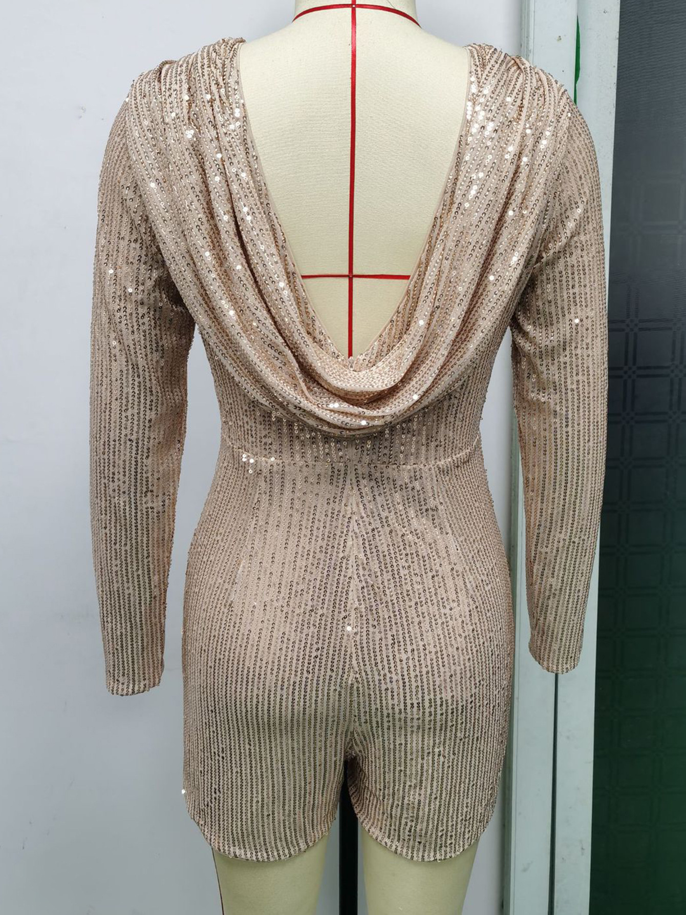 Sexy Retro Long Sleeve Short Sequined Jumpsuit Women Clothing