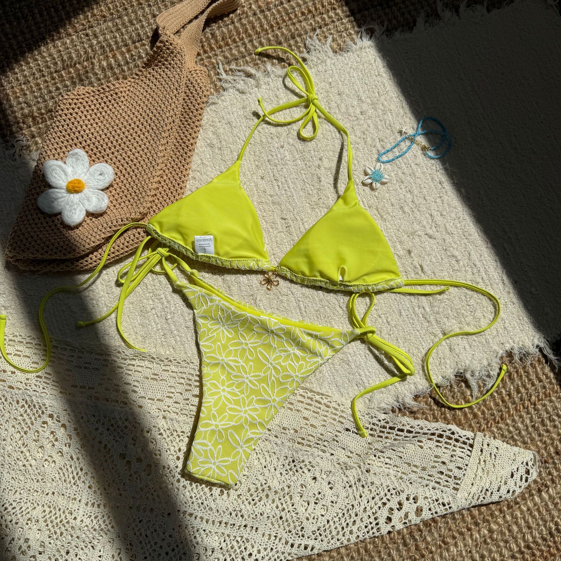 Sexy Two Piece Bikini Swimsuit Women Split Halter Lace up Swimsuit