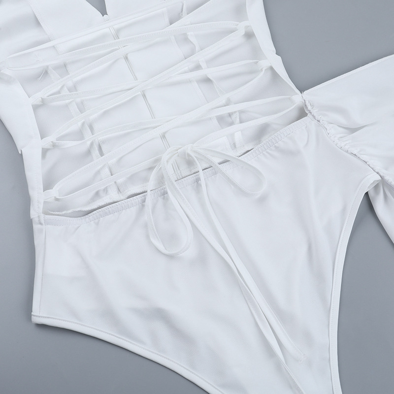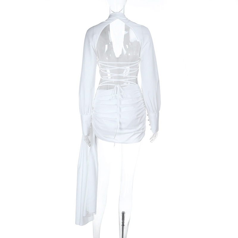 Sexy V neck Ribbon Backless Lace up Slim Fit Long-Sleeved Hip Dress Women
