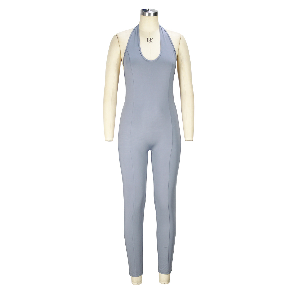 Sexy Women Wear Halter Round Neck Backless Jumpsuit Slim Fit Jumpsuit