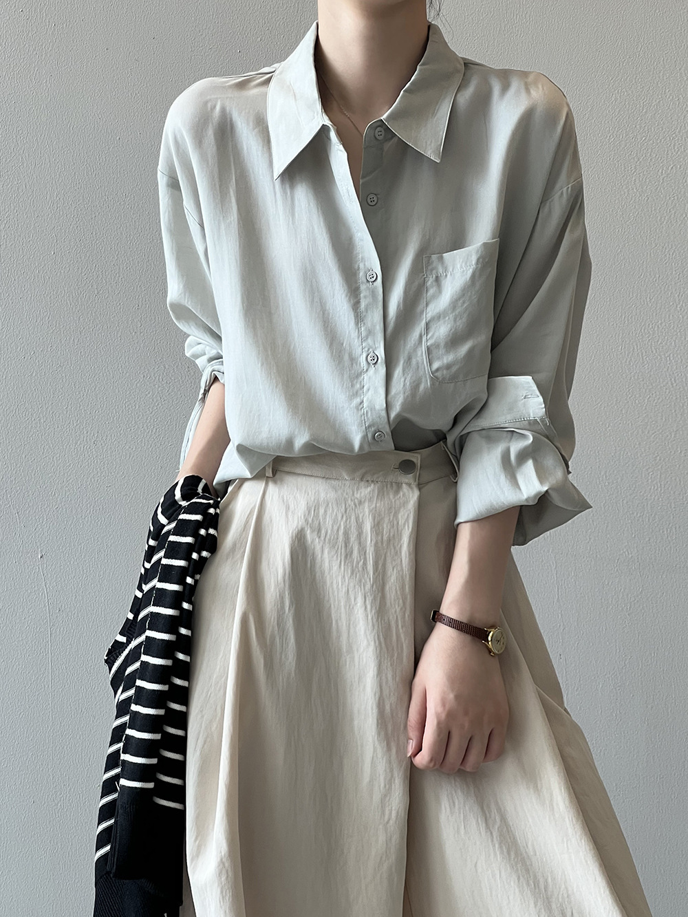 Simple Shirt Long Sleeved Shirt Women Autumn Loose Bandage Dress Shirt
