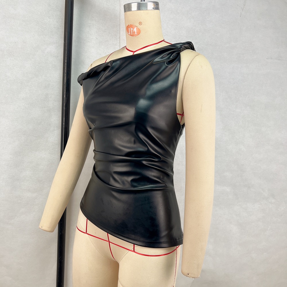Sleeveless Vest Leather Oblique Shoulder Personality Irregular Asymmetric Top Women Clothing