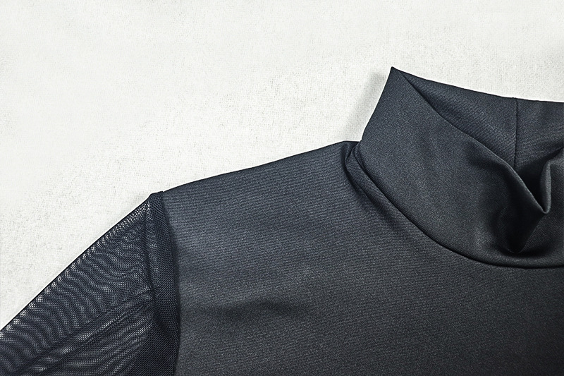 Slim Women Split Solid Color Hip Turtleneck Grenadine Sheer Long Sleeve Dress