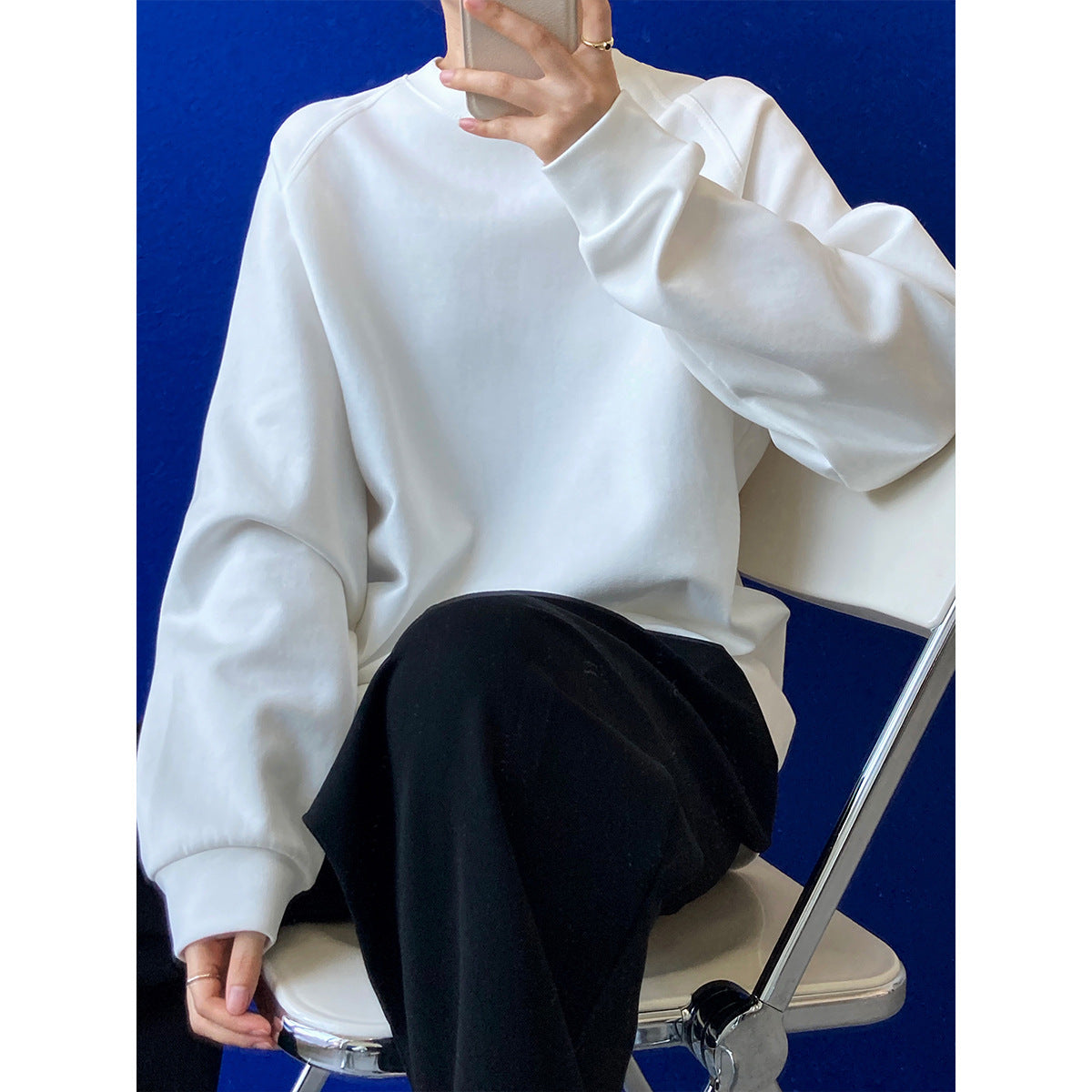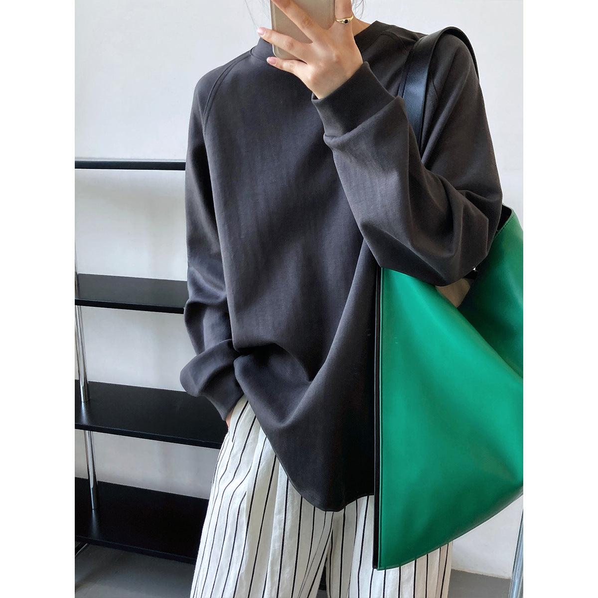 Solid Color Round Neck Bandage Dress Long Sleeve T Shirt Women Spring Lazy Loose Women Base Hoodie Thin