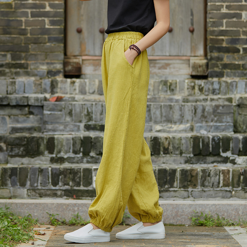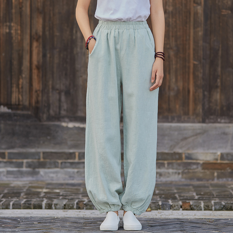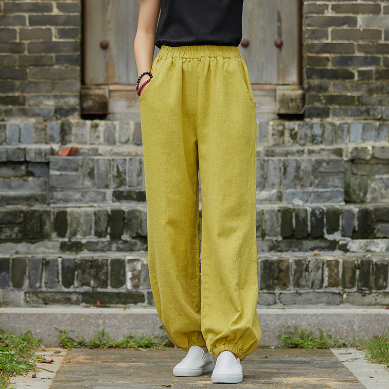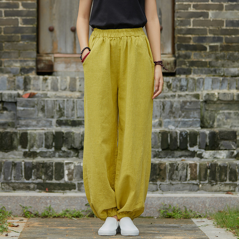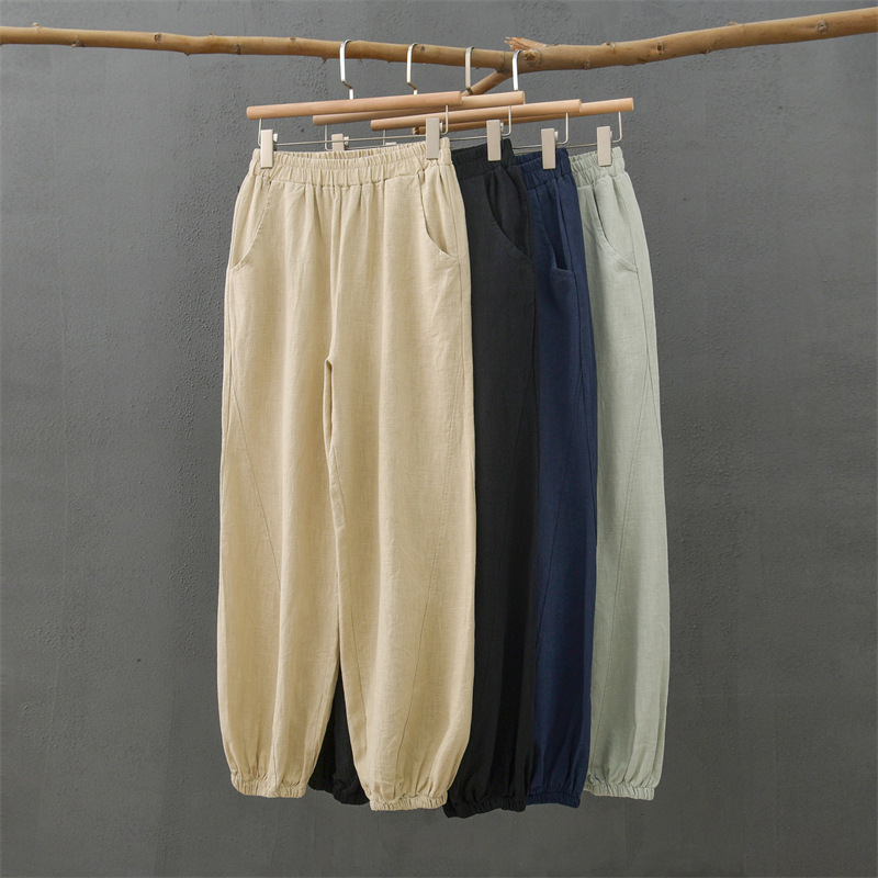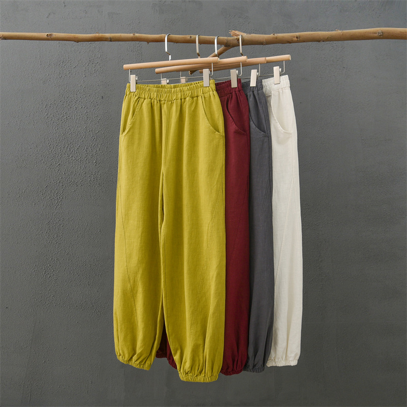 Spring Summer Cotton Linen Women Clothing Retro Stone Washed Ramie Bamboo Section Casual Trousers Women Cotton Linen Knickerbockers Yoga Pants