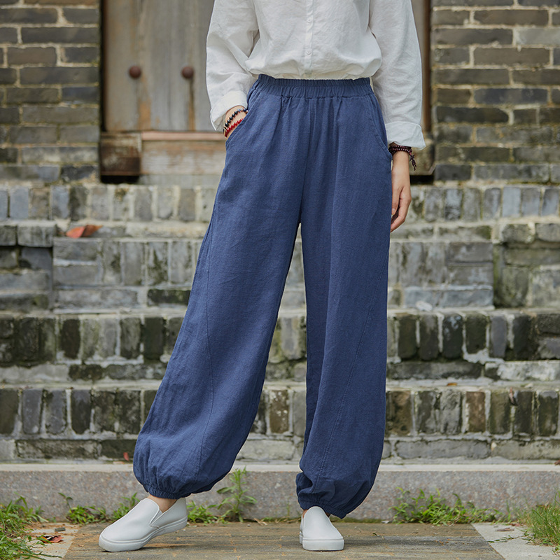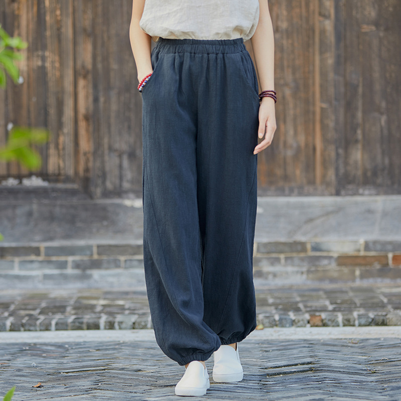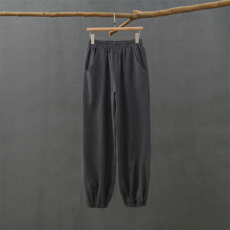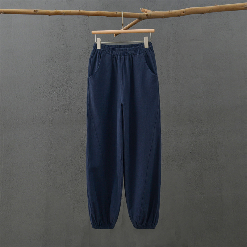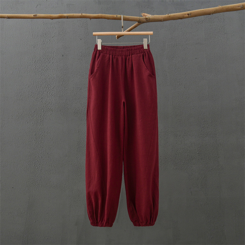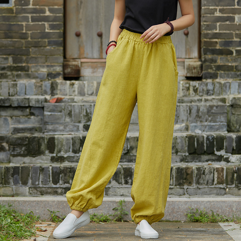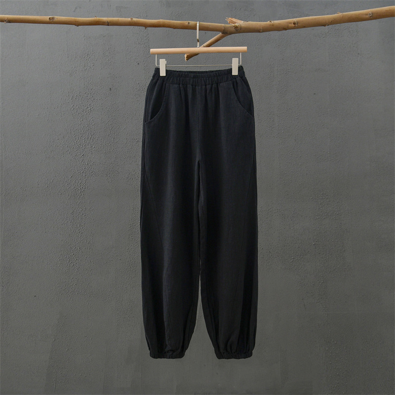 Spring Summer Cotton Linen Women Clothing Retro Stone Washed Ramie Bamboo Section Casual Trousers Women Cotton Linen Knickerbockers Yoga Pants