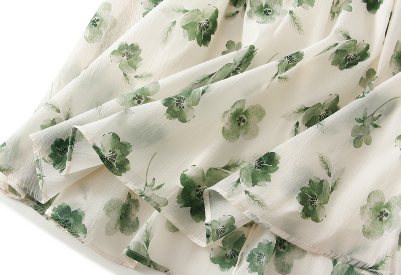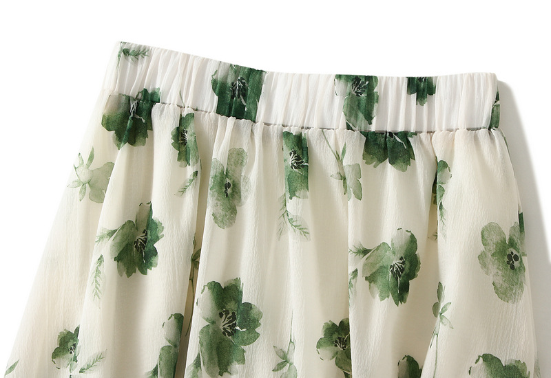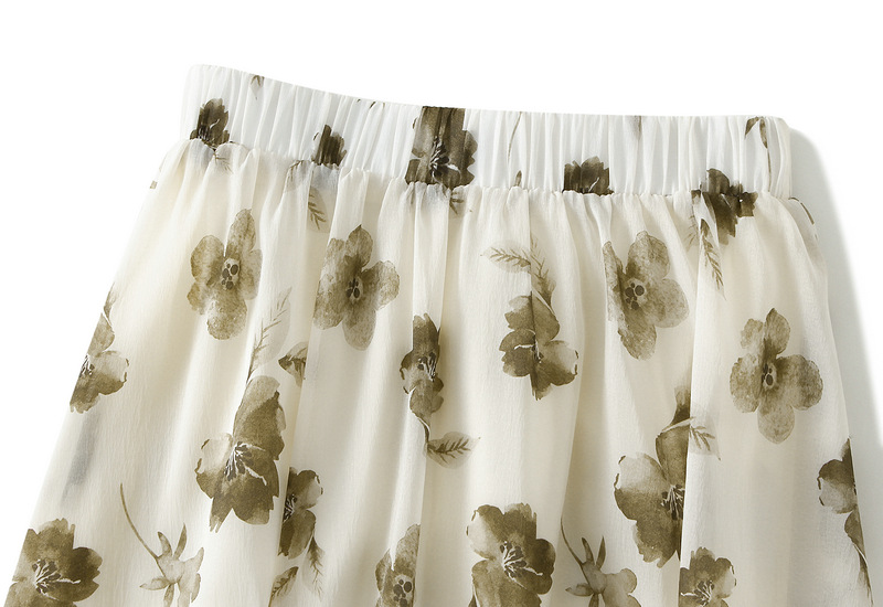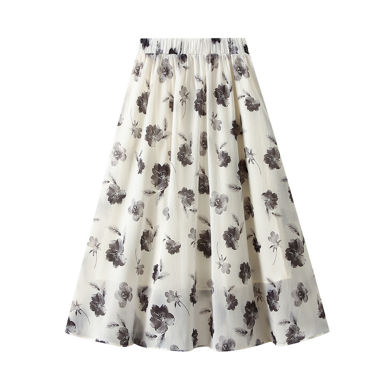 Spring Summer Women Ink Print Skirt A Line Skirt High Waist Slimming Midi Skirt