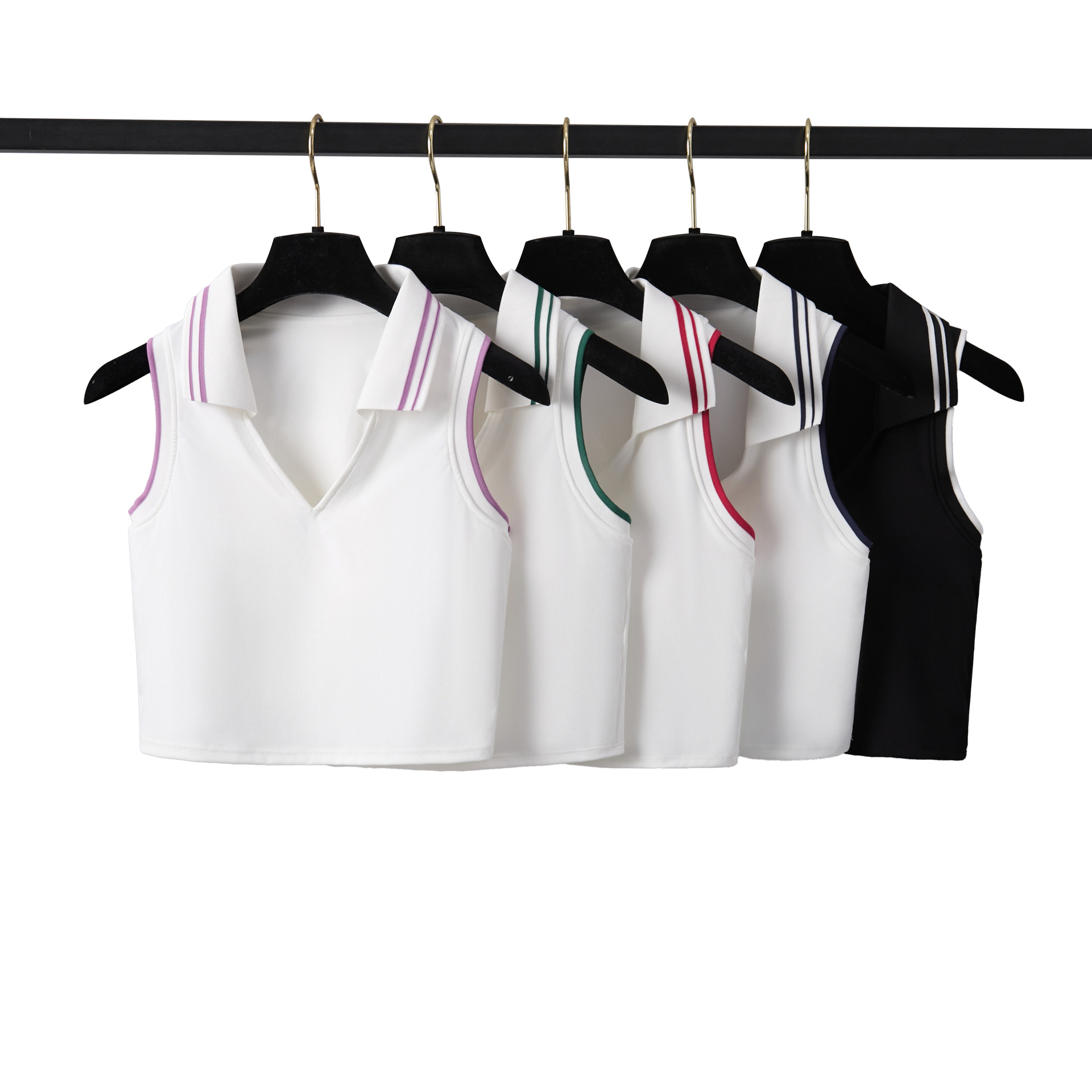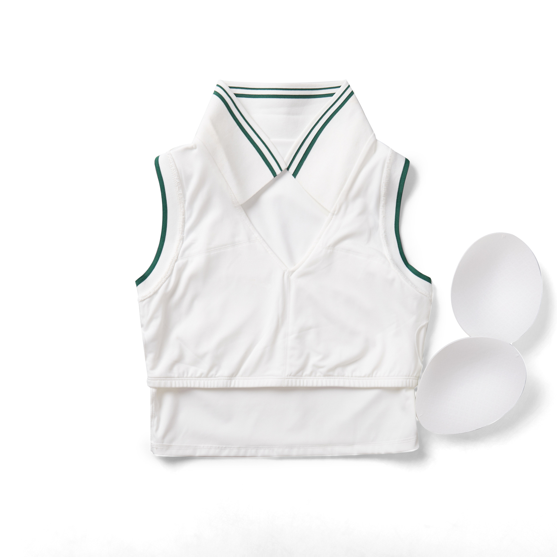 Stand Collar Tennis Women Yoga Fitness Running Top Quick Drying Sleeveless Vest with Chest Pad