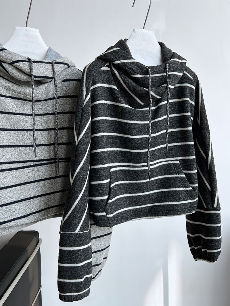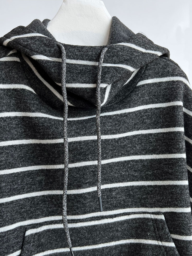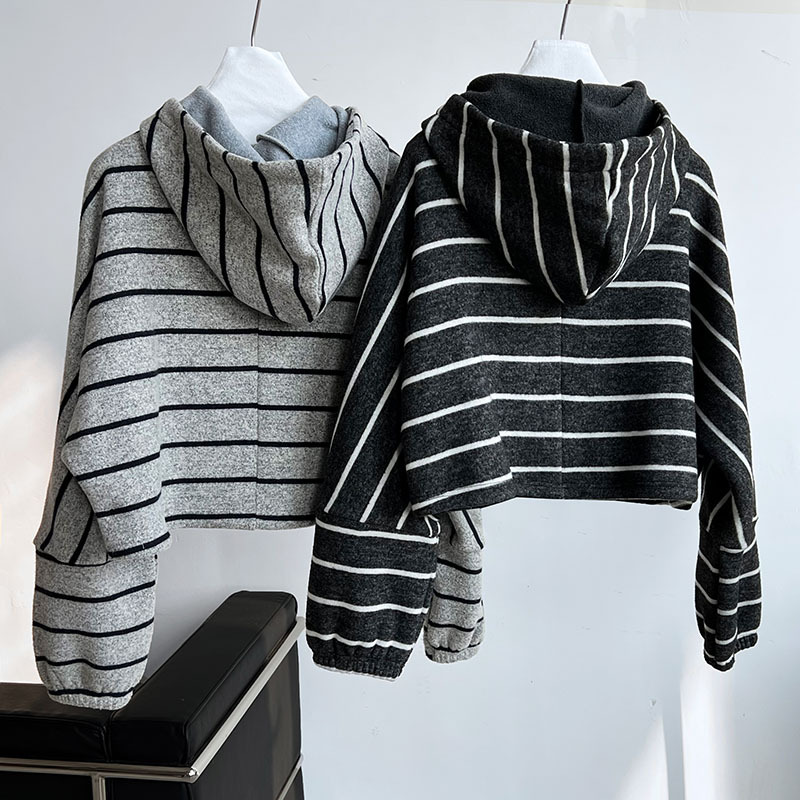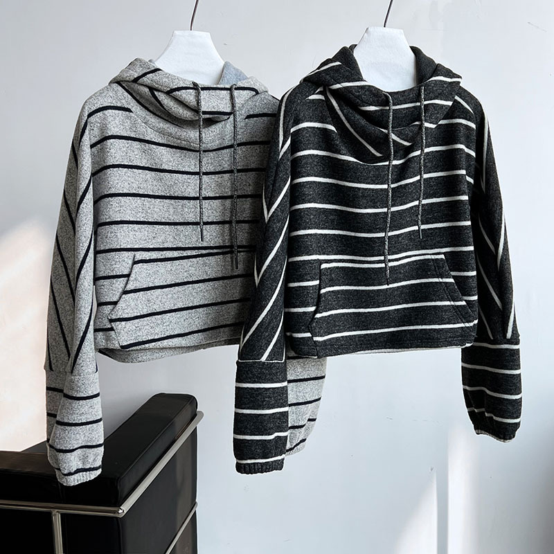 Stitching Contrast Color Stripes Hooded Thick Sweatshirt Women Autumn Winter Casual Loose Top