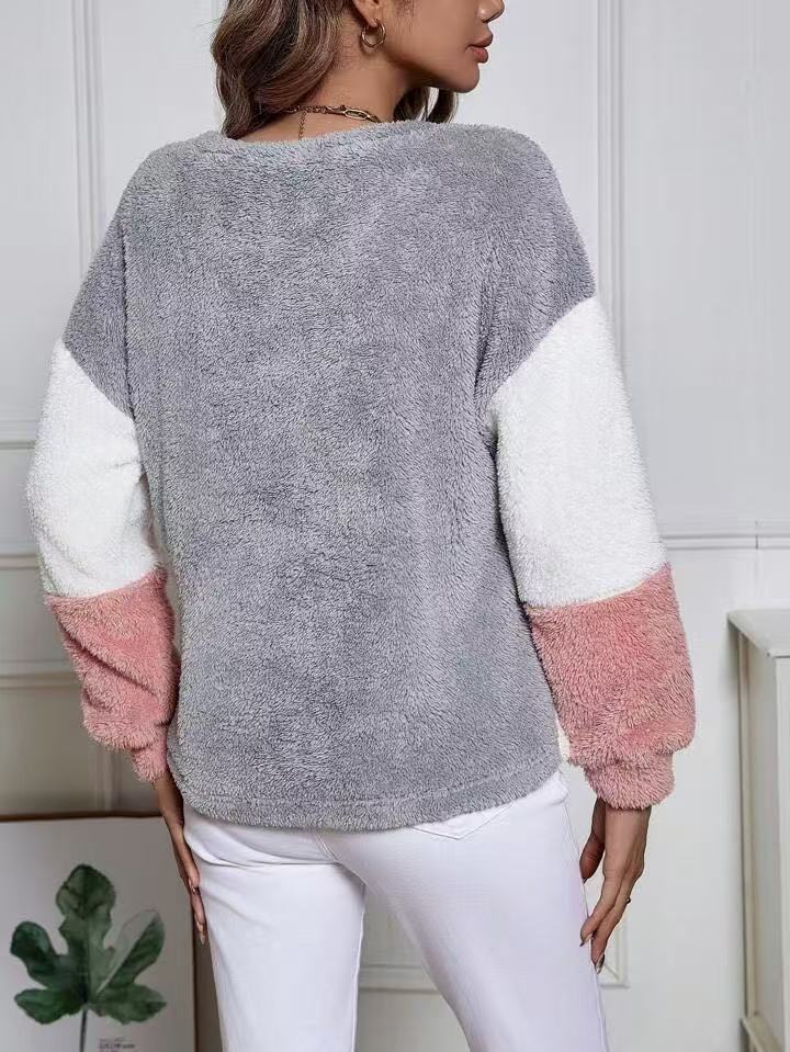 Stitching Double Sided Plush Women Pullover Keep Warm Top Fall Winter