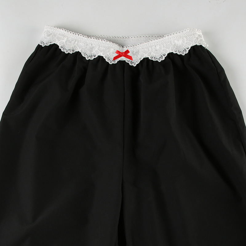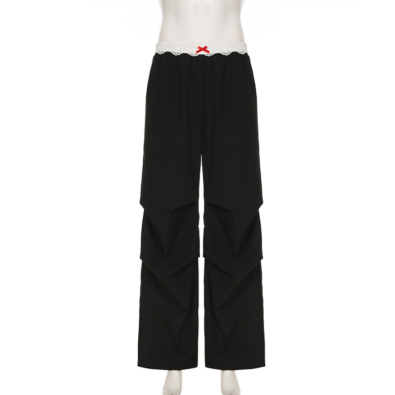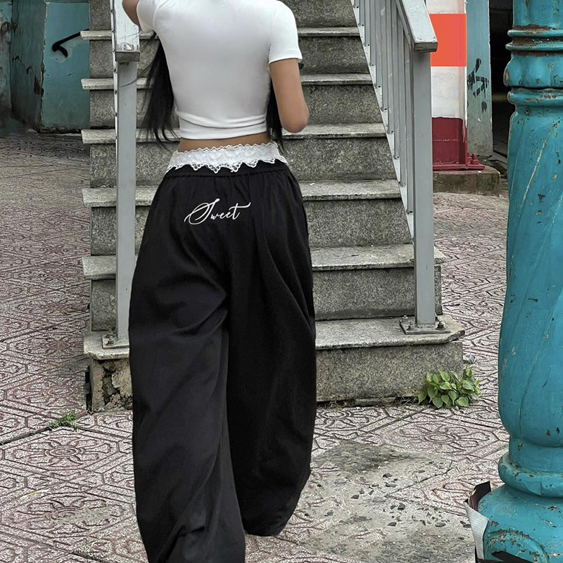 Street Stitching Lace Contrast Color Waist Head Women Summer Wide Leg Mopping Woven Trouser