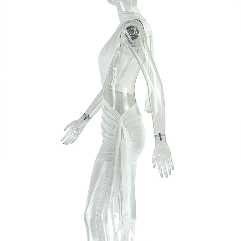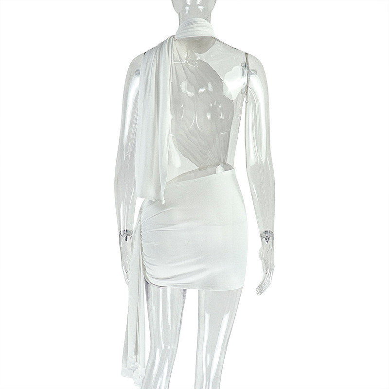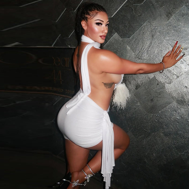 Street Women Wear Stitched Backless Solid Color Hip Lace up Pleated Asymmetric Dress