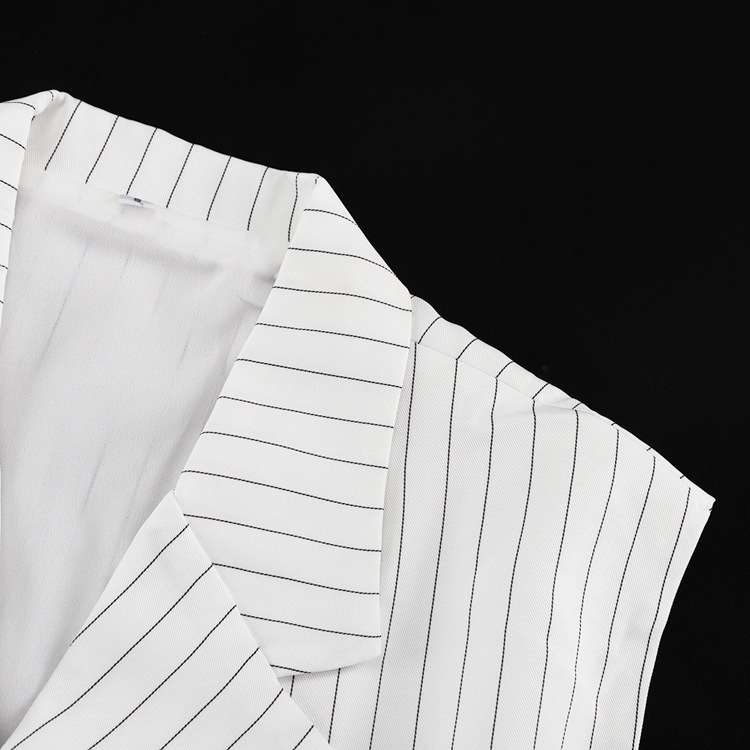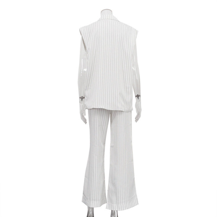 Striped Vest Women Collared Sleeveless Top Wide Leg Pants Office Two Piece Sets