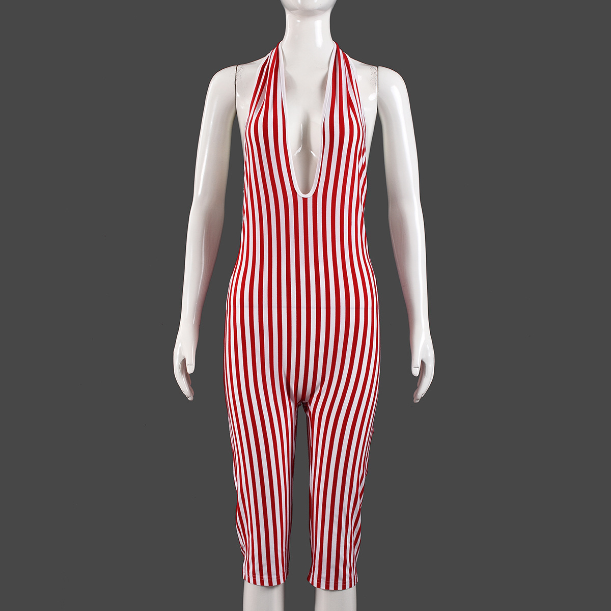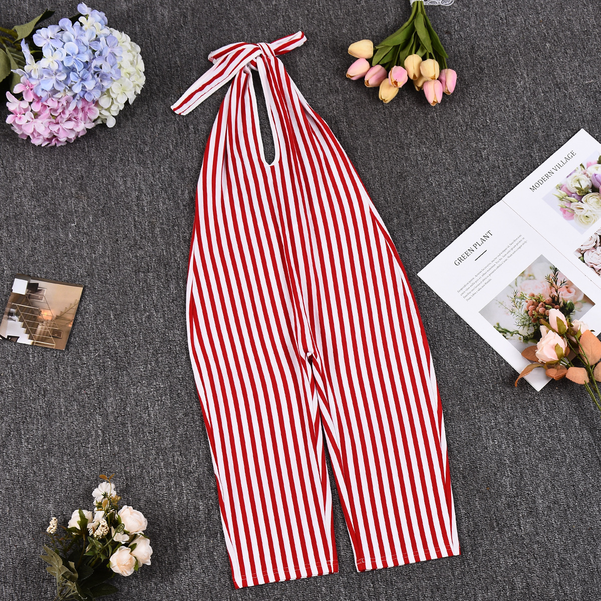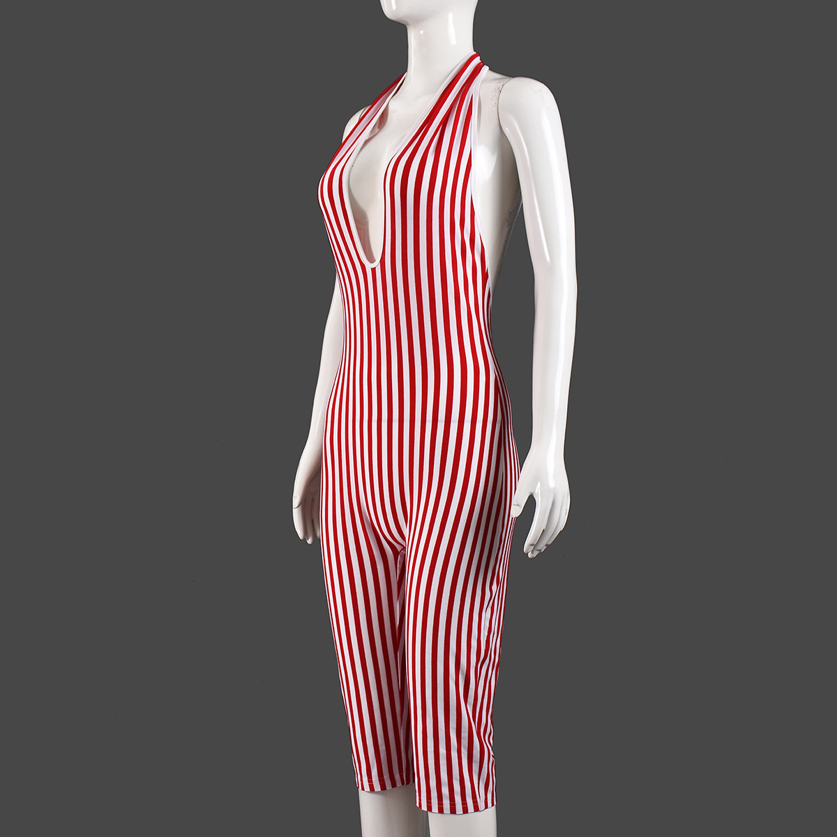 Stripes Hollow Out Cutout Backless Lace up Short High End Jumpsuit Women