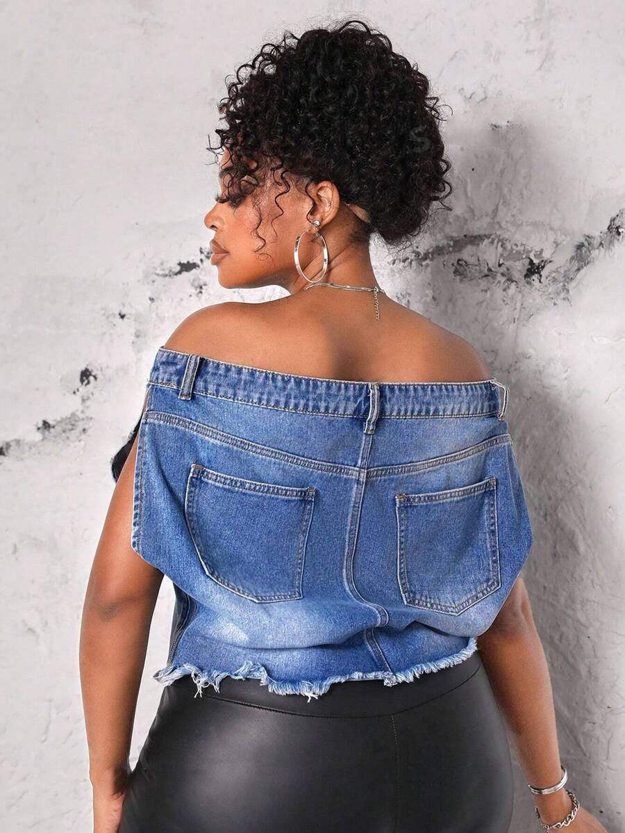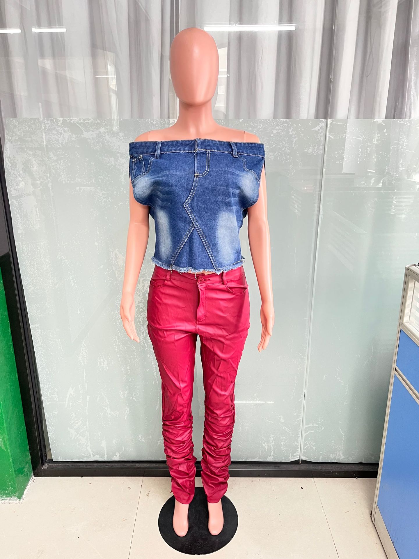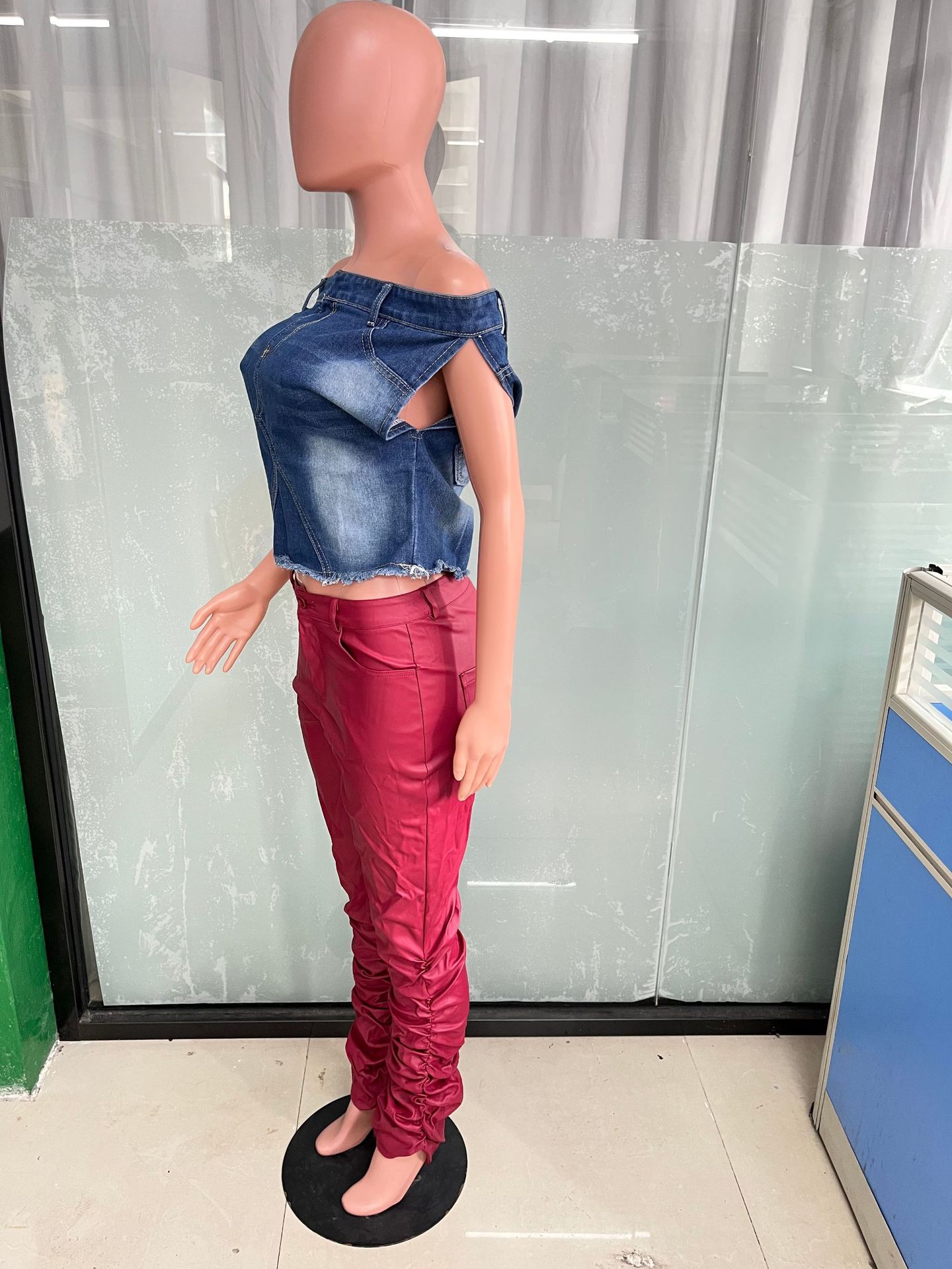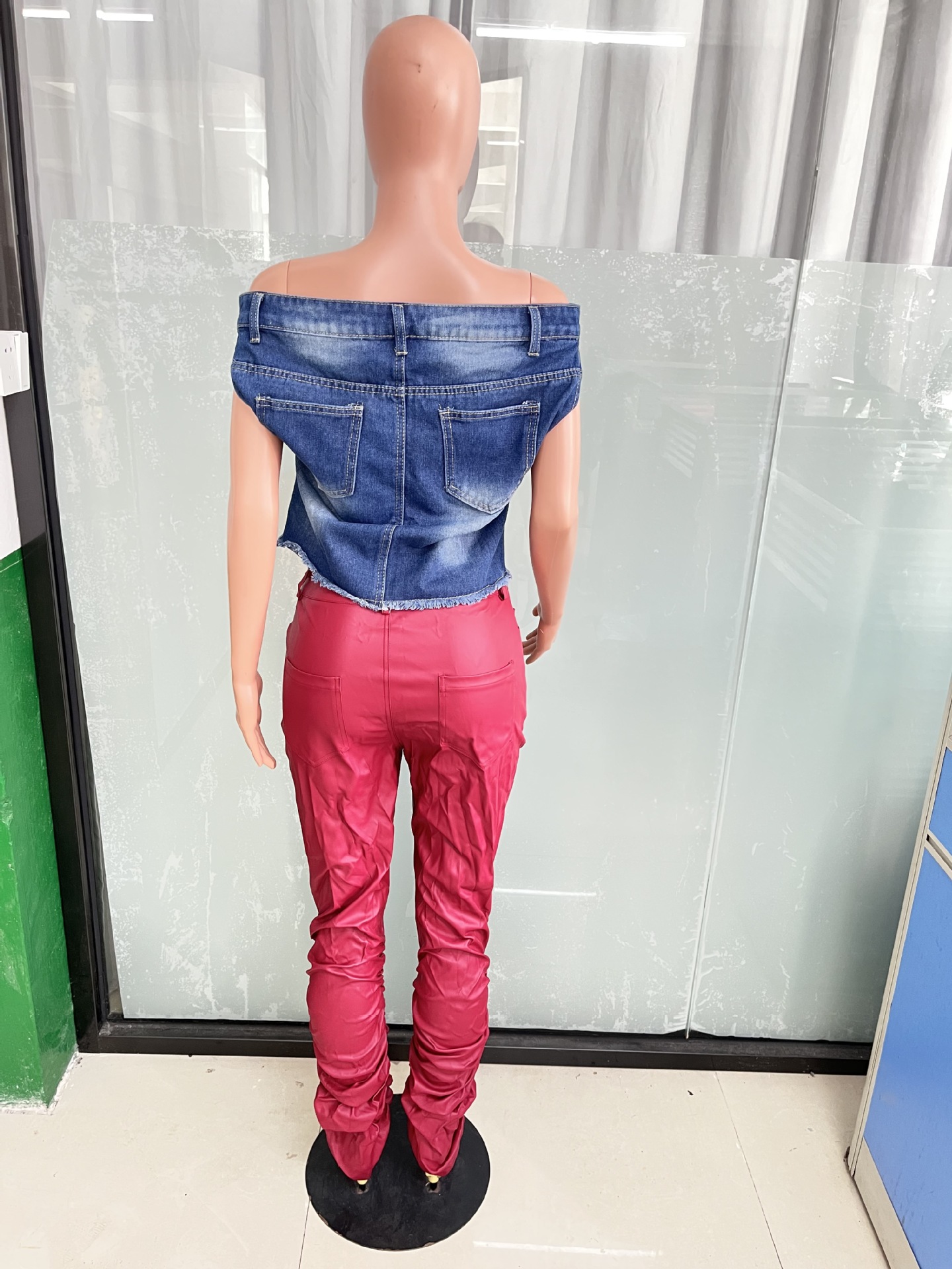 Summer All Matching Slim Fit Slimming Jacket Vest Top off Shoulder T shirt Top Denim Coat