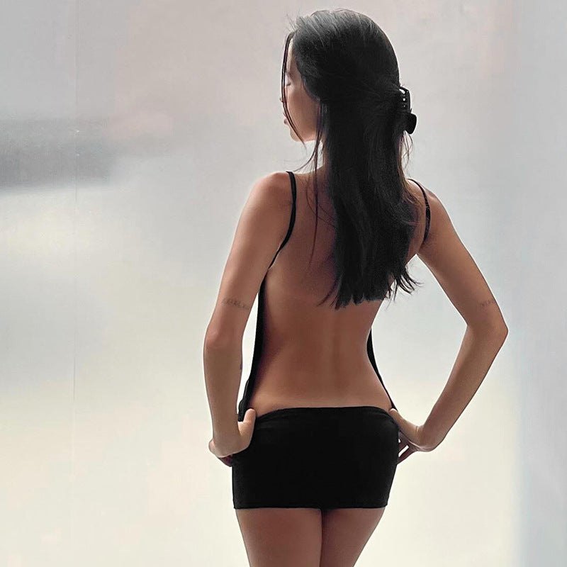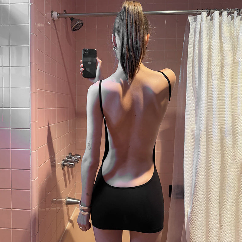 Summer Autumn Women Clothing Sexy Solid Color Sling Backless Hip Wrapped Short Dress