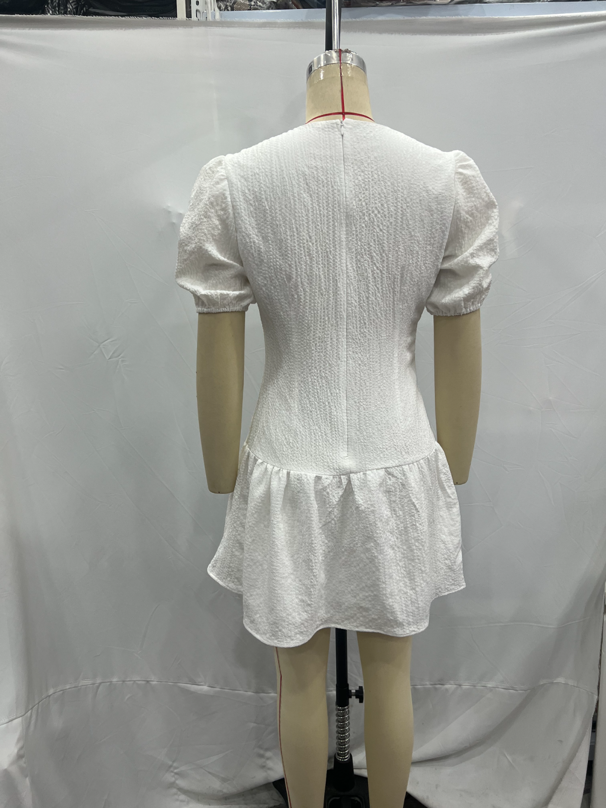 Summer Hollow Out Cutout Embroidered Mid Length Ruffled Dress White Ruffled Women