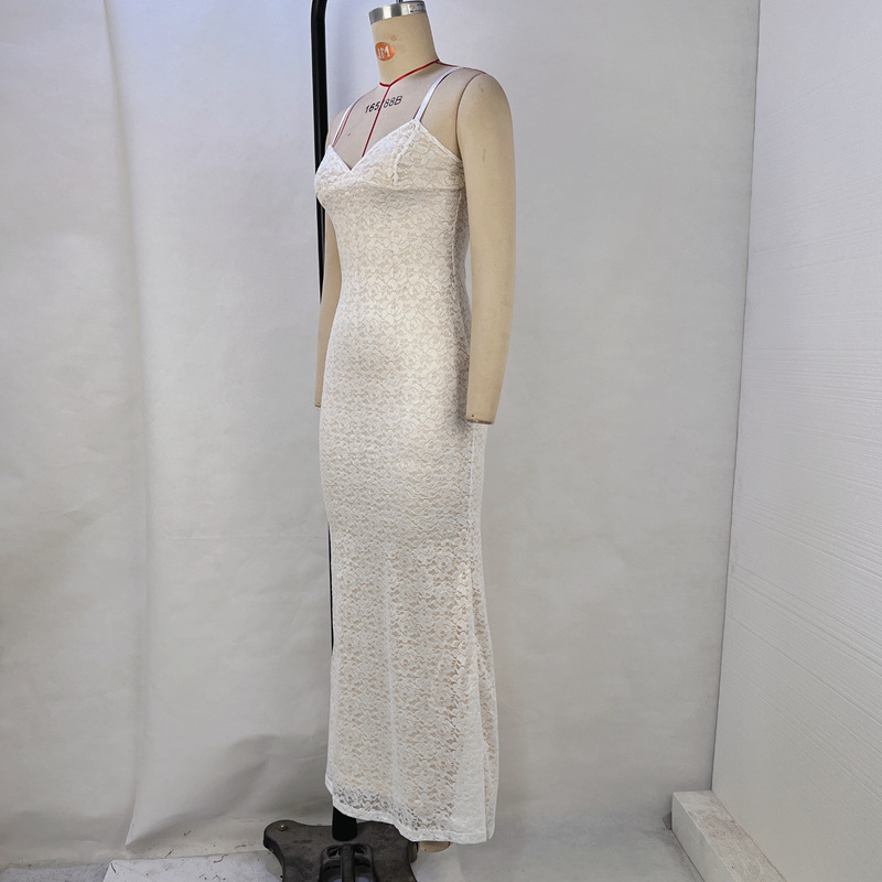 Summer Sexy V neck Lace Waist Hip Spaghetti Straps Dress Women