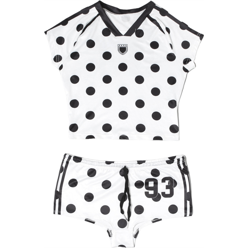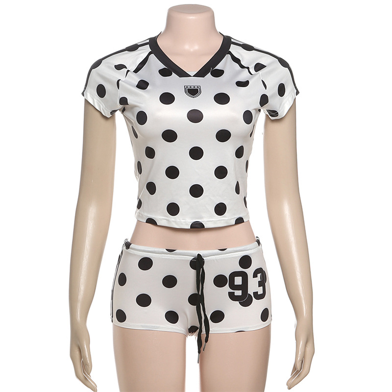 Summer Slim Fit Digital Printed Short Sleeved Top High Waist Hip Lift Shorts Suit Women
