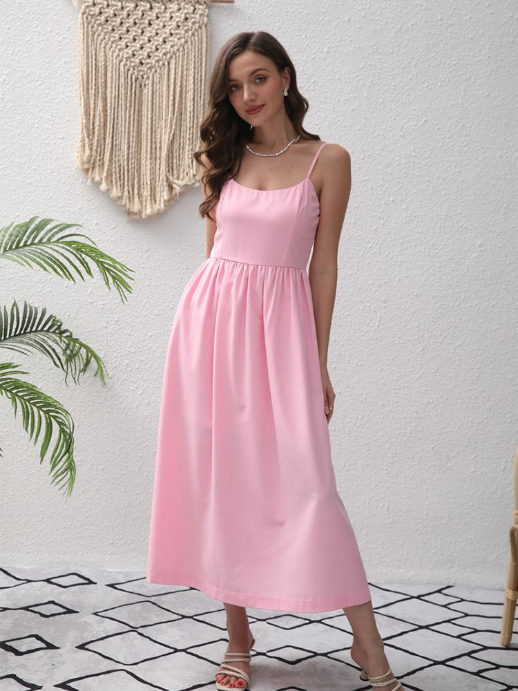 Summer Suspender Maxi Dress Backless Elegant French Dress Elegant Big Hem Dress
