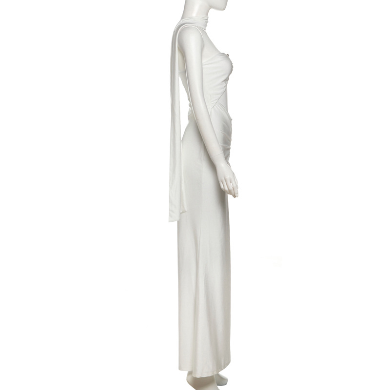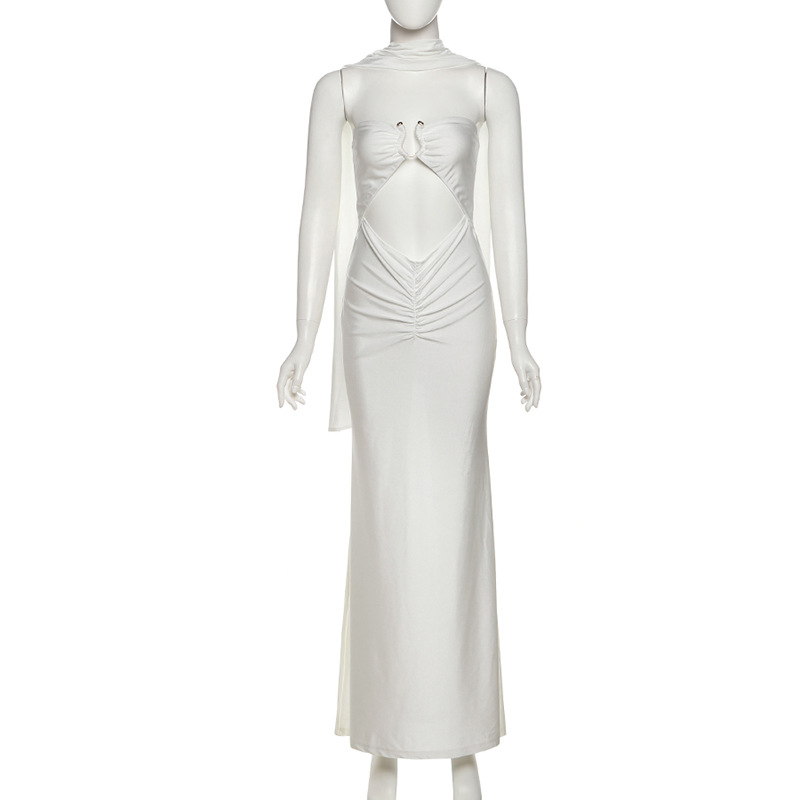Summer Women Clothing High Class Elegant Solid Color Slim Hollow Out Cutout-out Tube Top Scarf Collar Dress