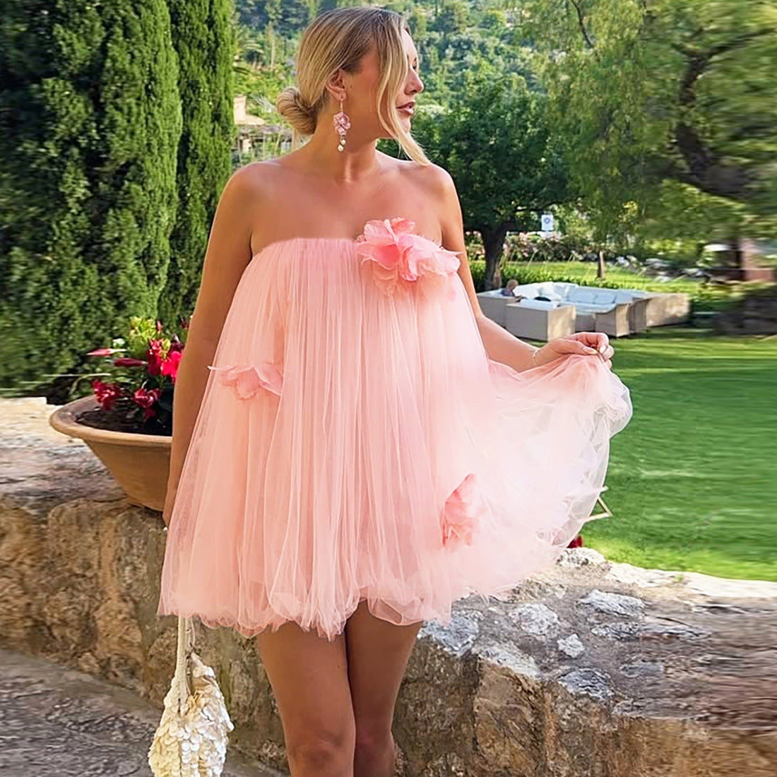 Summer Women Clothing Sexy Mesh Umbrella Princess Dress Three Dimensional Floral Invisible Sling Dress