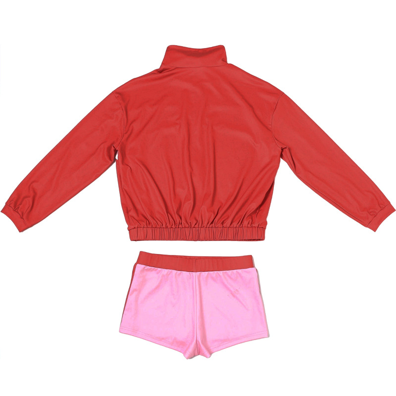 Summer Women High Collar Long Sleeve Top Hip Shorts Sports Casual Set