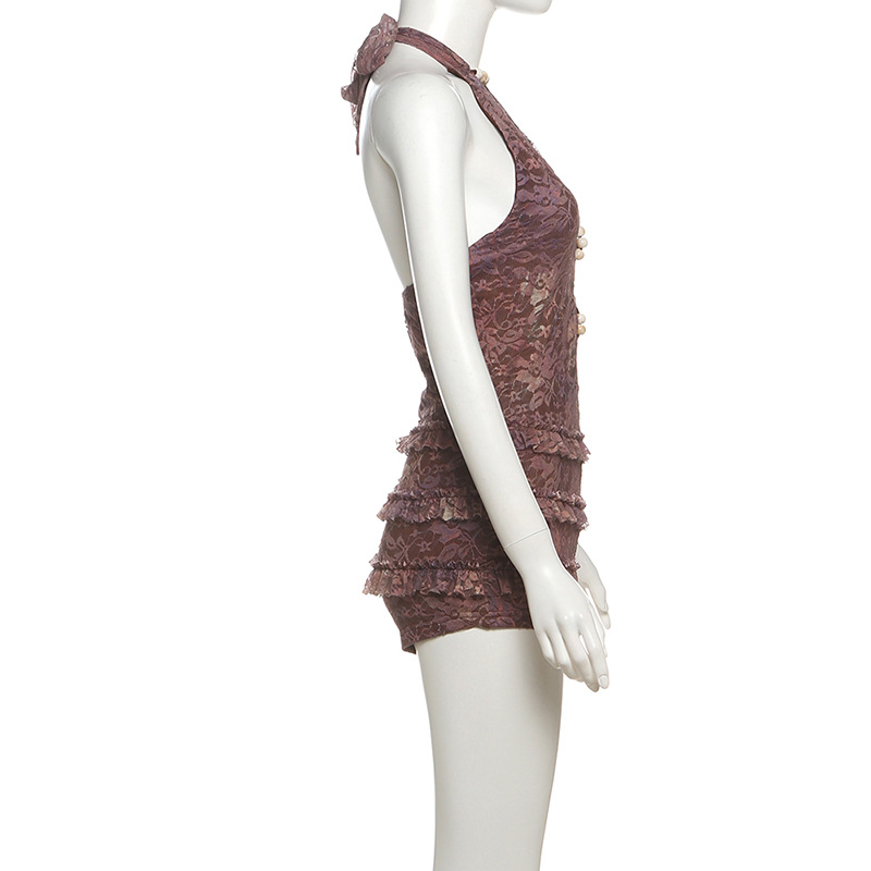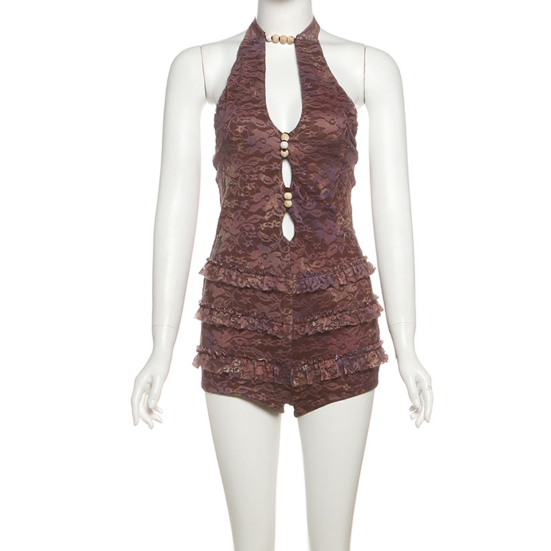 Summer Women Sexy Halter Backless Hollow Out Cutout out Romper