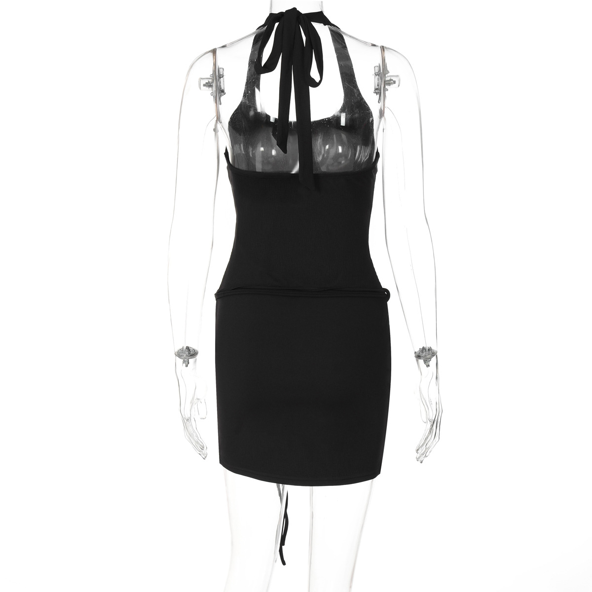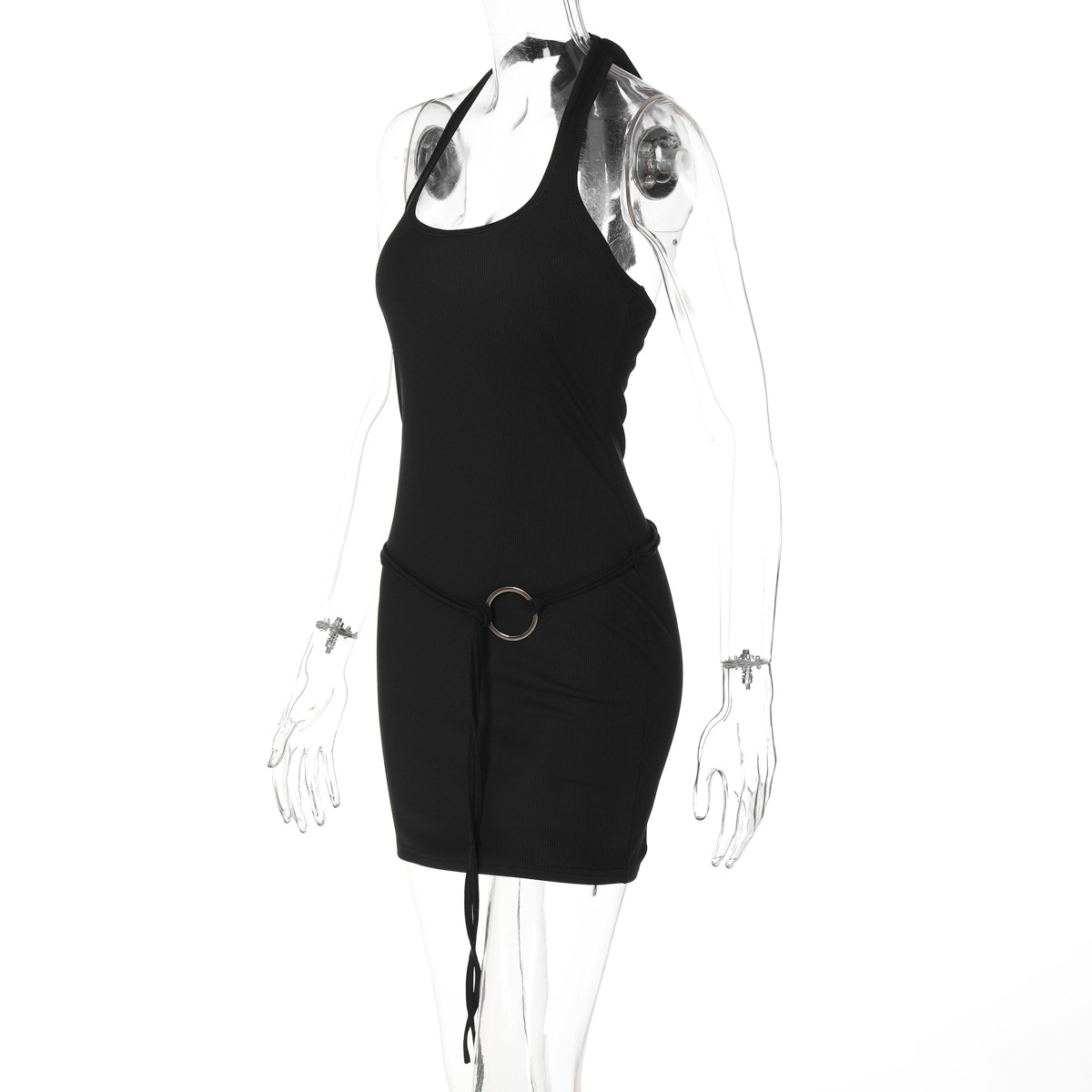 Summer Women Solid Color Sexy Lace Halter Short Dress Backless Sheath Dress