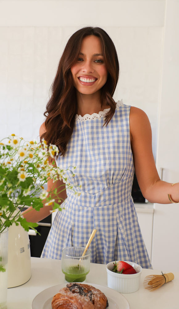 Summer Women Wear Plaid Waist Tight Stand Collar Short Sleeveless Jumpsuit
