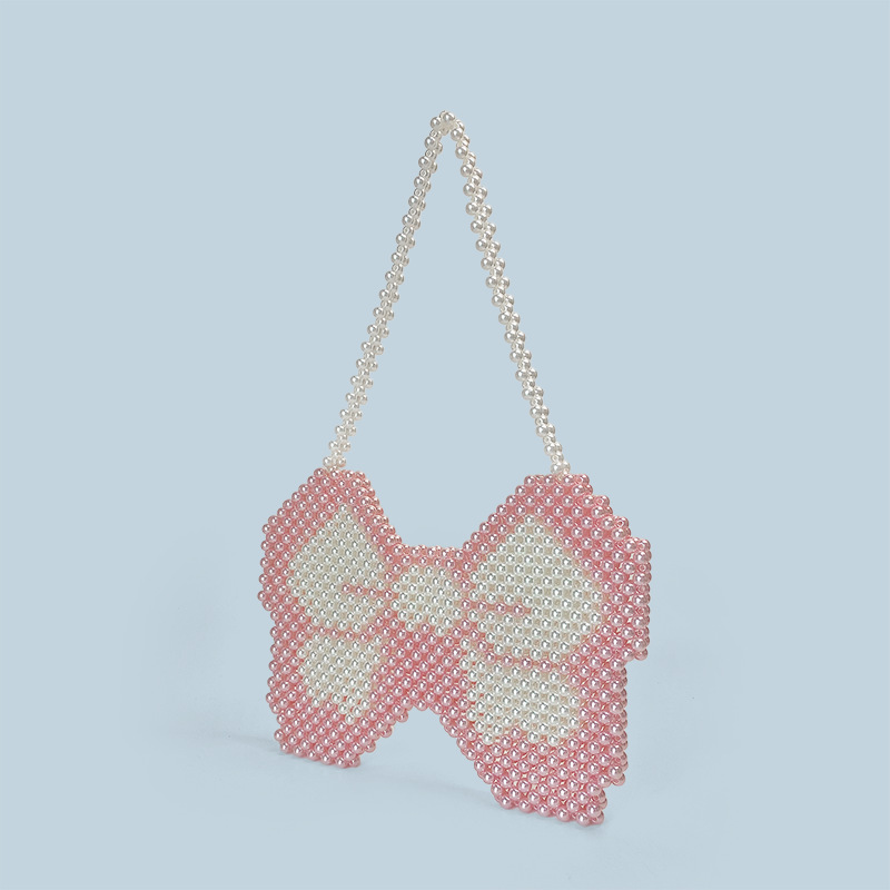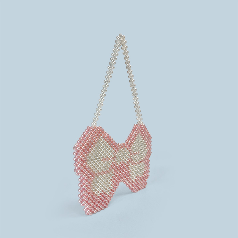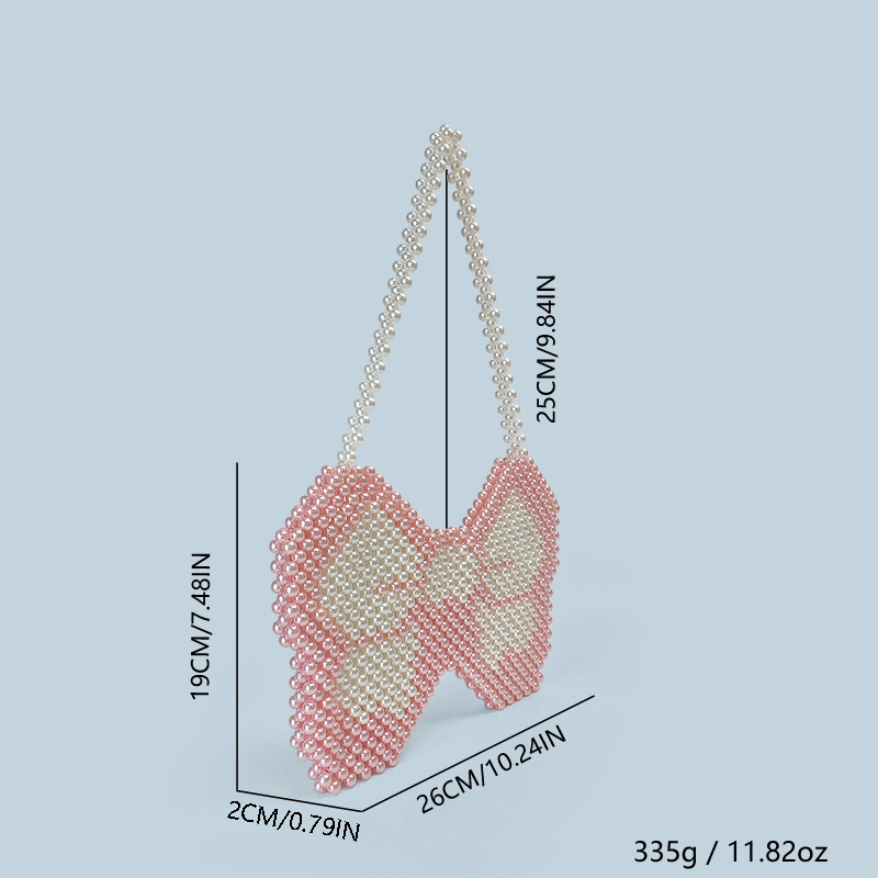 Sweet Spicy Handmade Beaded Bag Butterfly Pink Mobile Phone Bag Heavy Industry Niche Underarm Bag Personalized Women