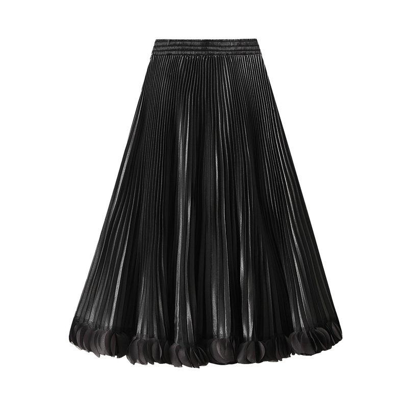 Swing Petal Skirt Graceful Pleated Skirt Spring Autumn Elastic Waist Skirt Women Mid Length