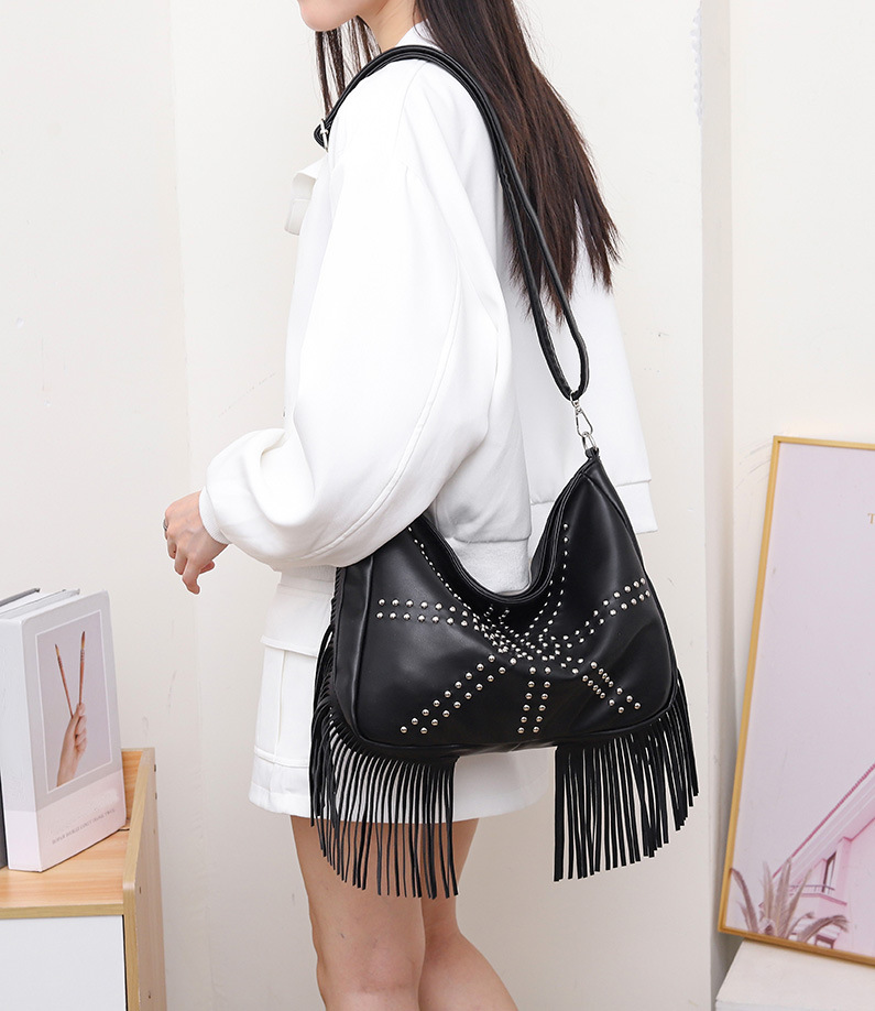 Trend Rivet Bag Tassel Bag Soft Surface Large Capacity Travel Holiday Casual Bag Lady Bag