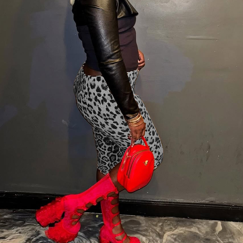 Trendy Sequin Model Sequin Women Leopard Print Stretch Shorts Elastic Waist Casual Shorts Women