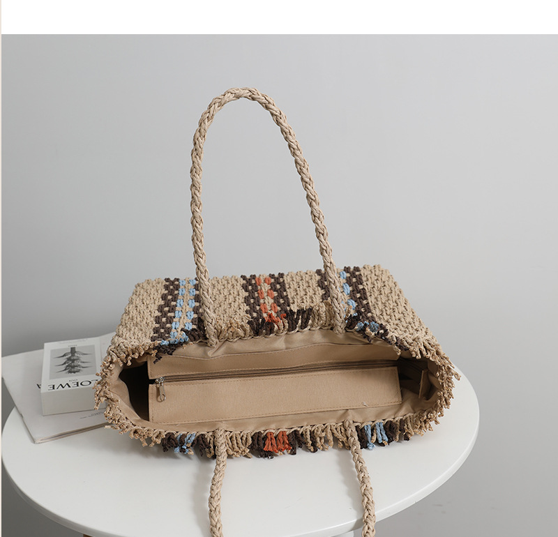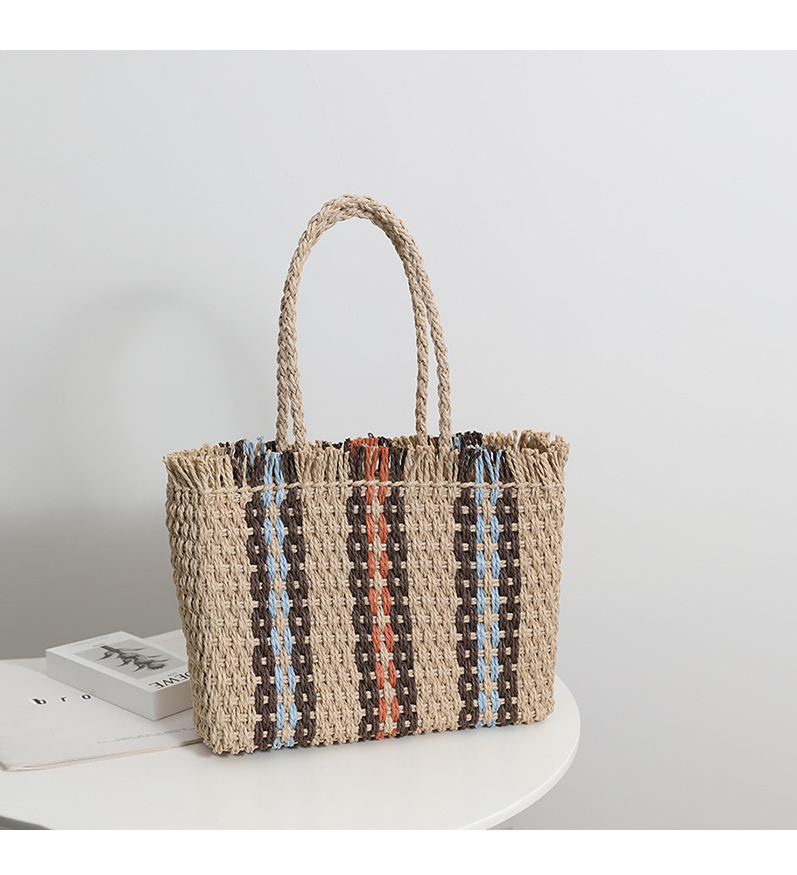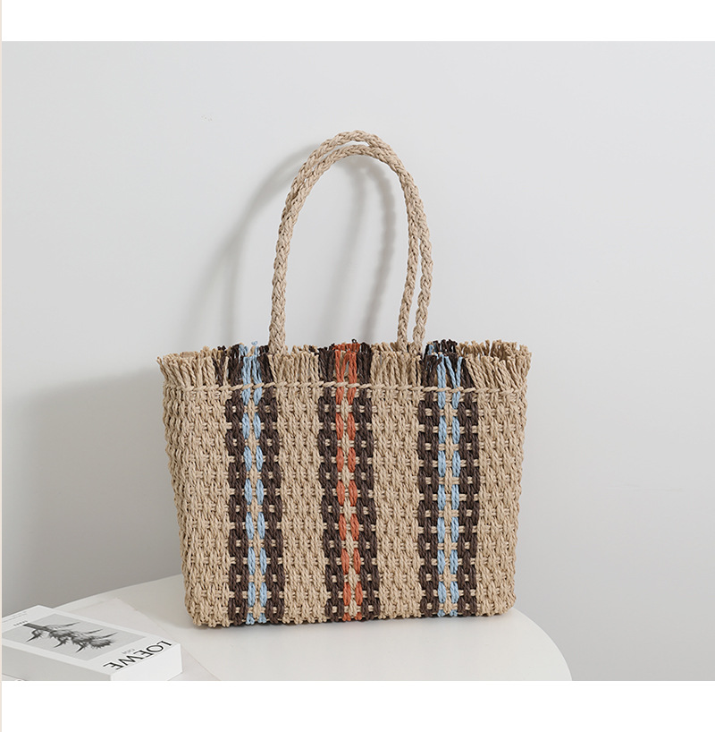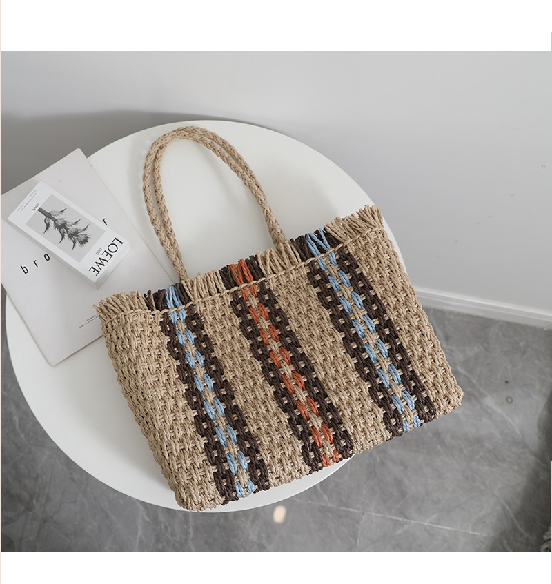 Vertical Stripes Straw Bag Woven Bag Women Simple Large Capacity Portable Shoulder Vacation Beach Bag