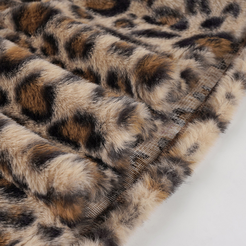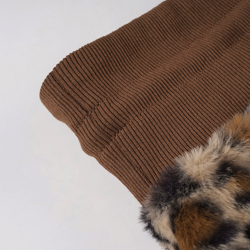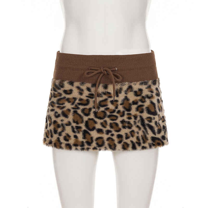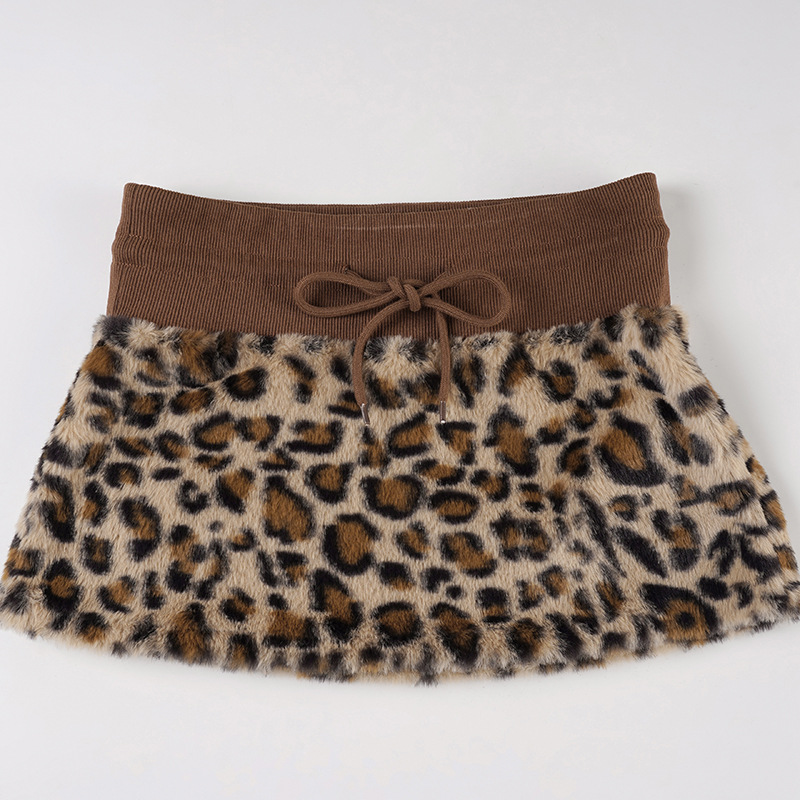 Vintage Leopard Print Stitching Waist Head Contrast Skirt Women Lace up Sexy Thread Furry Skirt