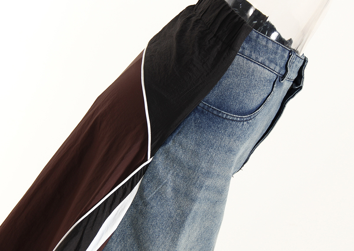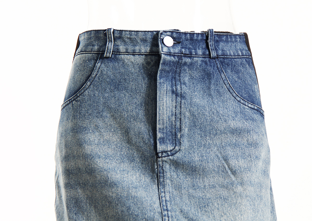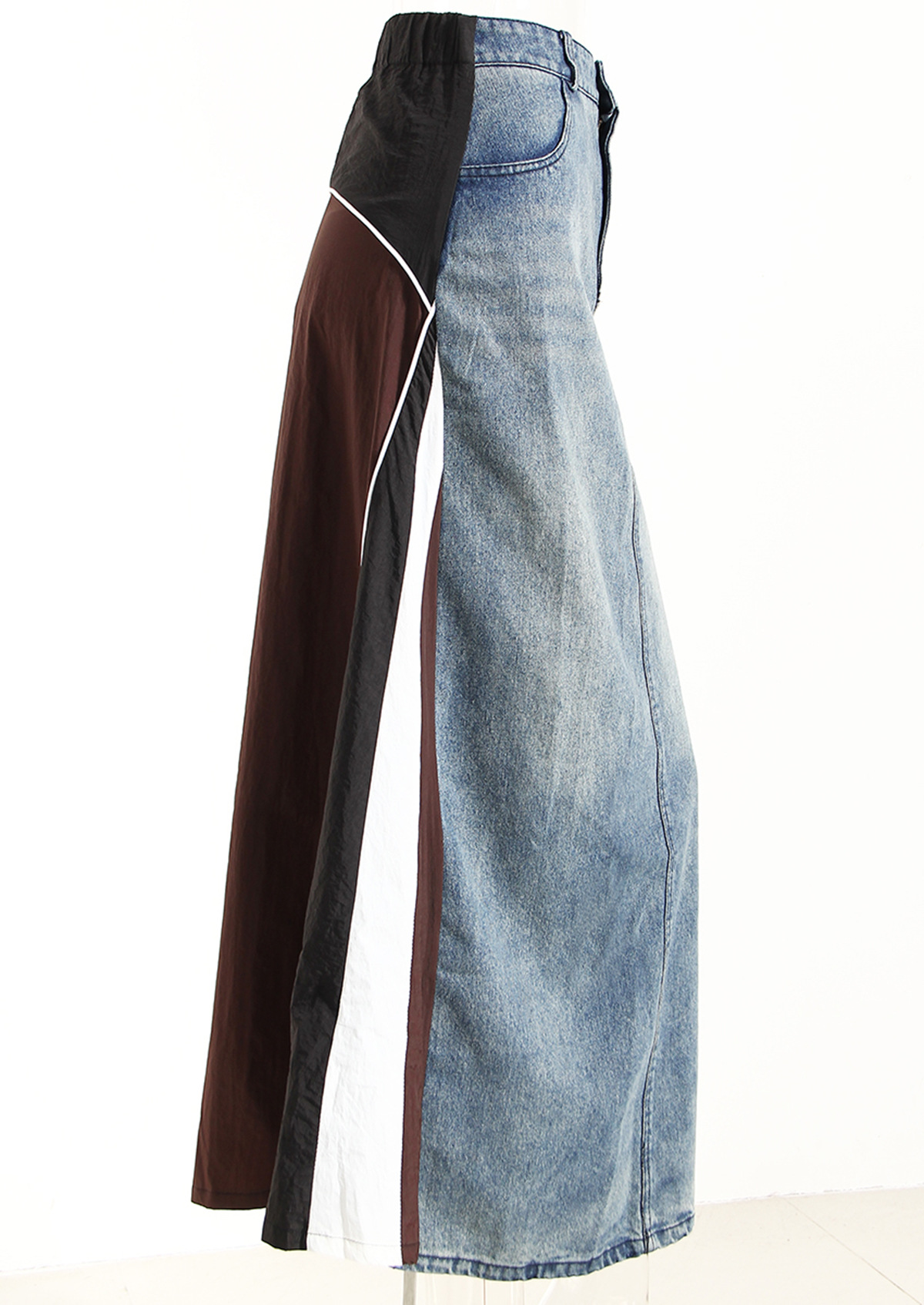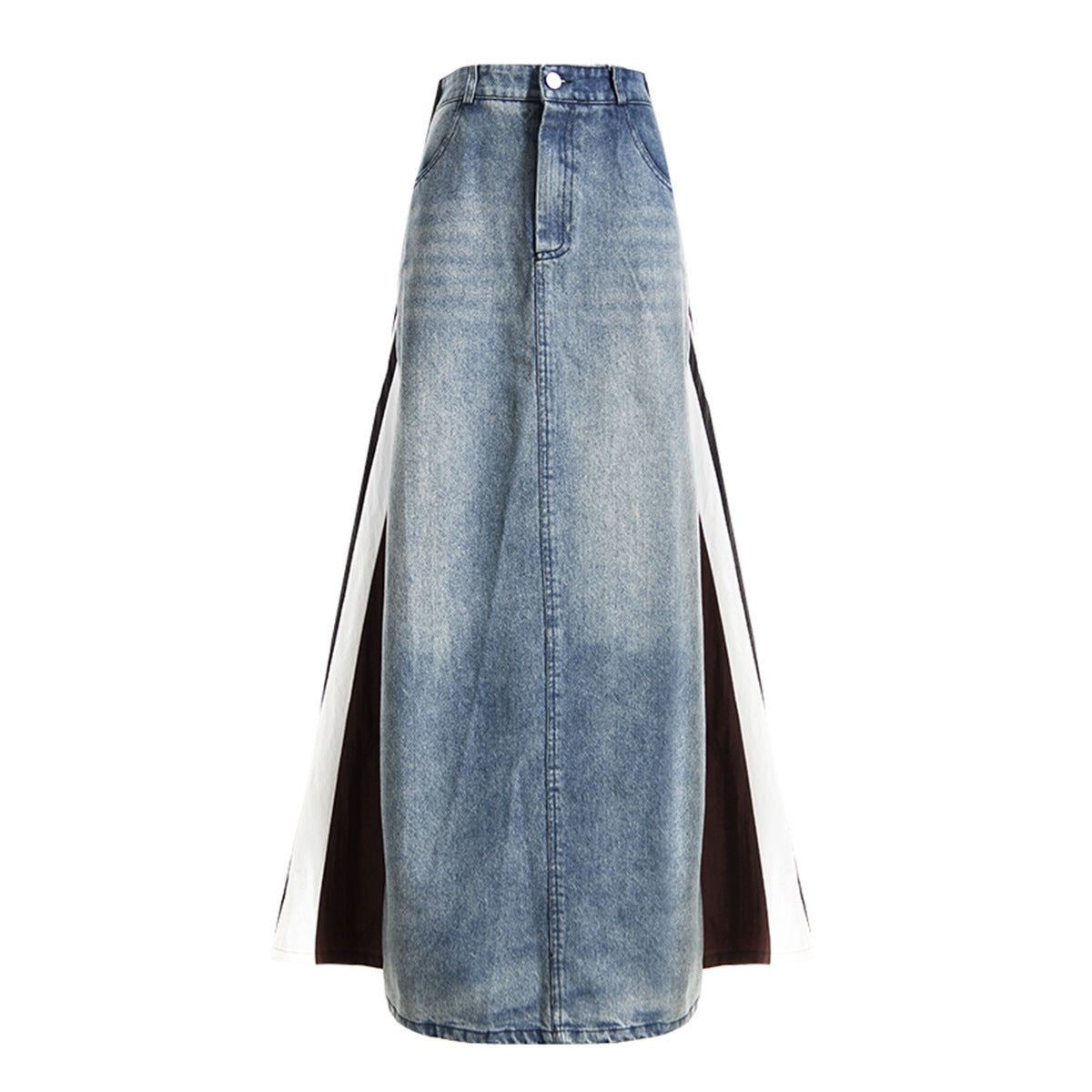 Washed Distressed Denim Patchwork Dragon Quilted Long Skirt Loose Long Mop Skirt for Women
