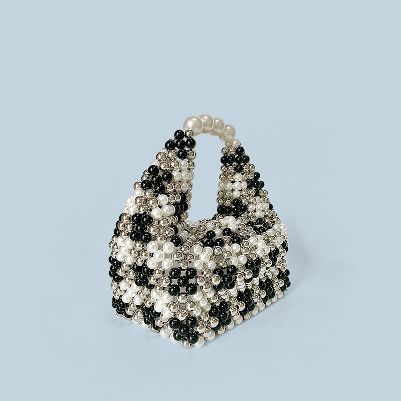 Western Niche Bag Design Black White Gray Plaid Portable Women Bag Large Beaded Handbag