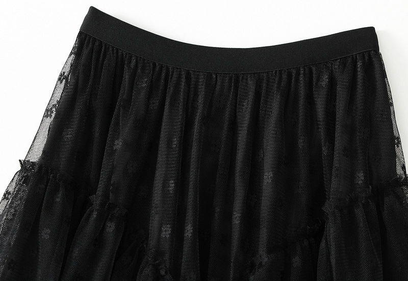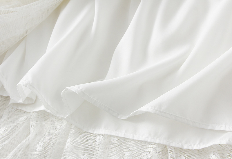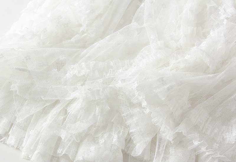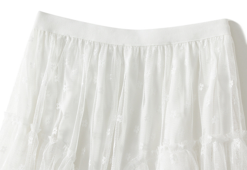 White Refined Handmade Lace Stitching Irregular Asymmetric Mesh Skirt Women Spring Autumn High Grade Tiered Dress Large Swing Skirt