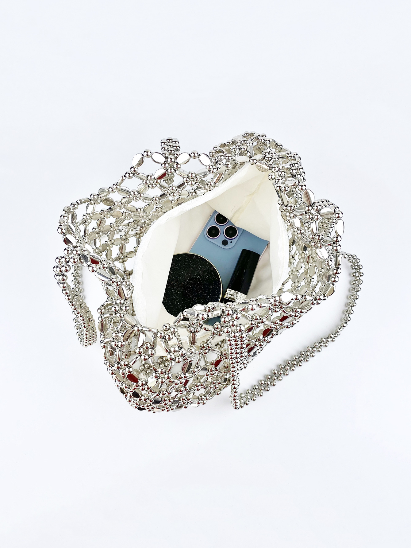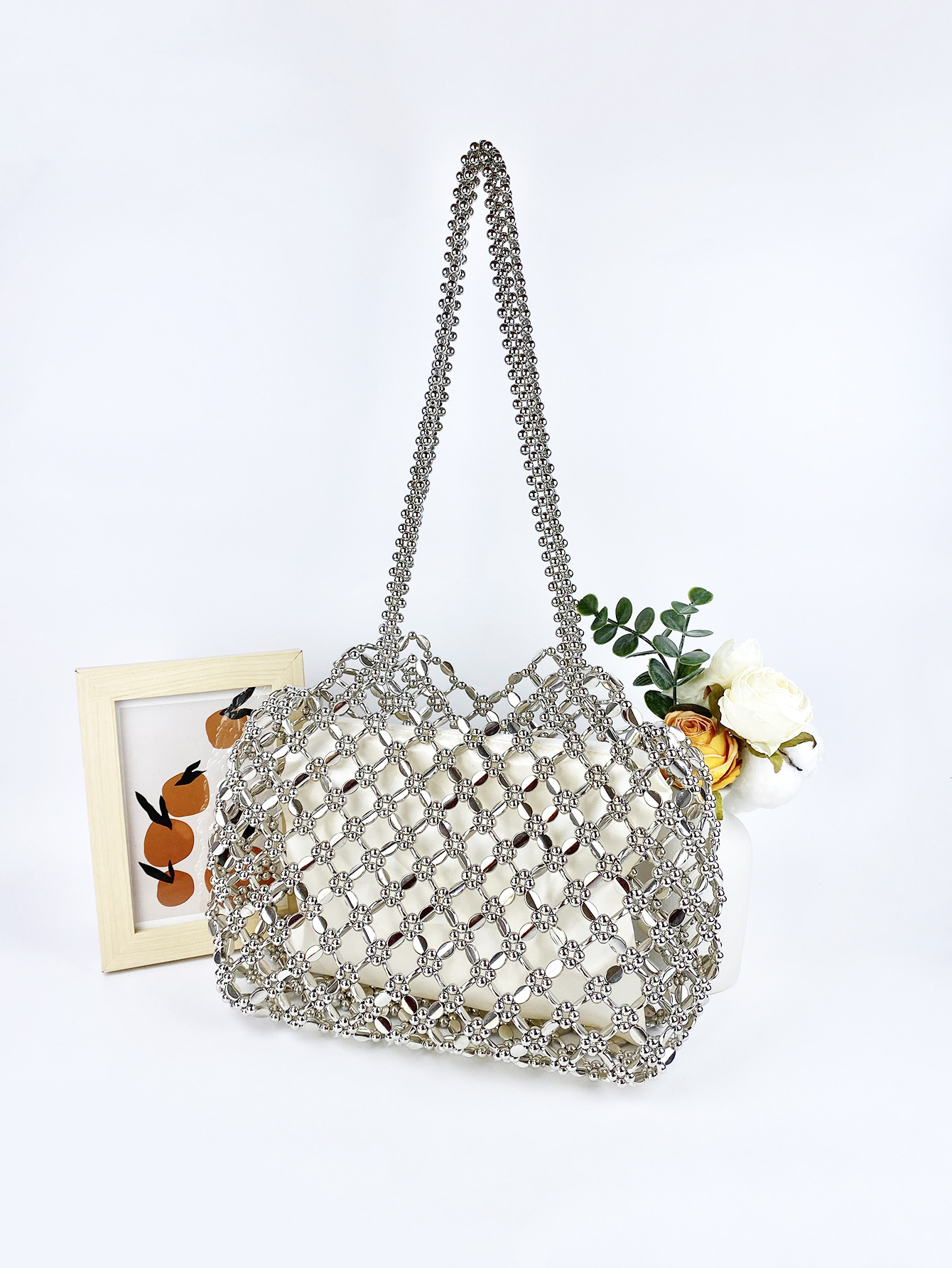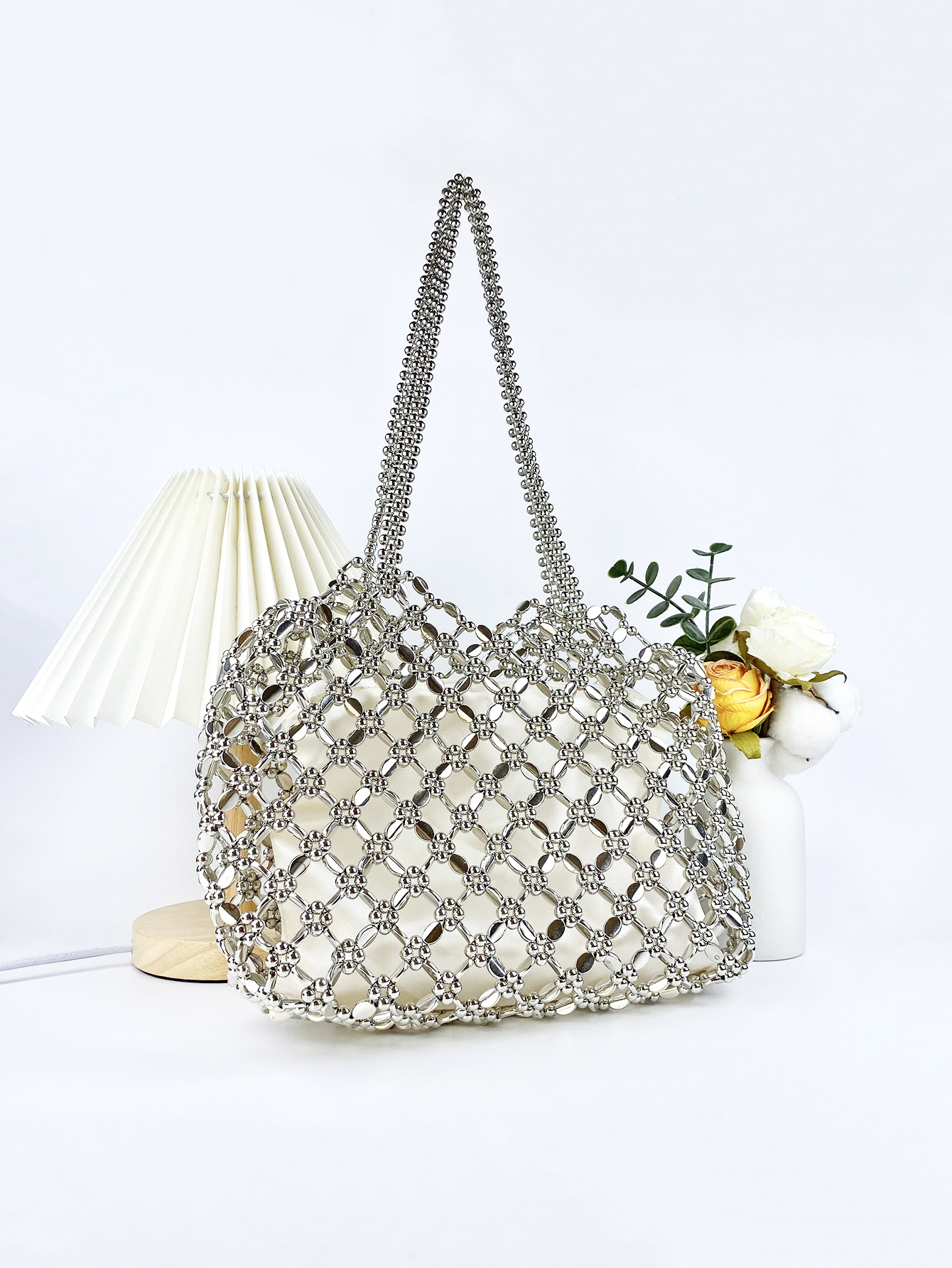 Winter Niche High Sense Silver Hollow Out Cutout Bags Women Lazy Work Office Shoulder Bag Bags