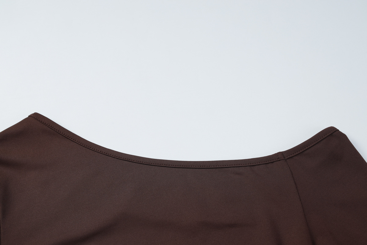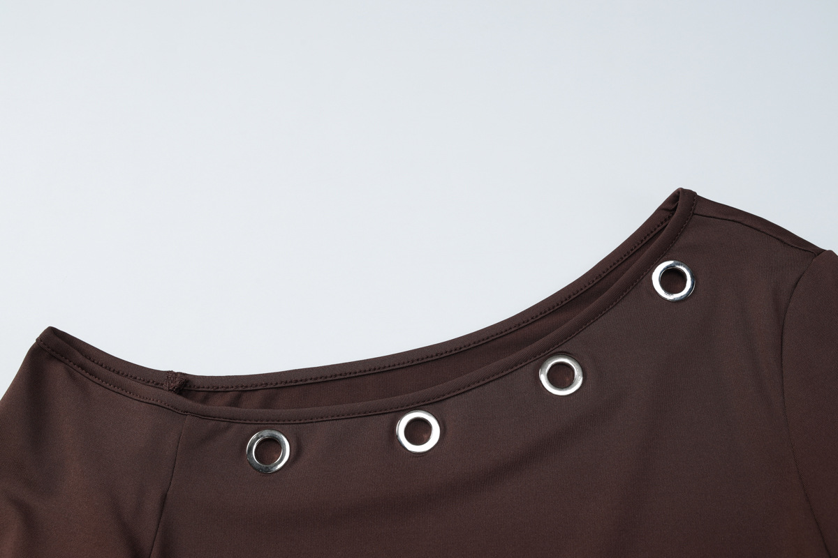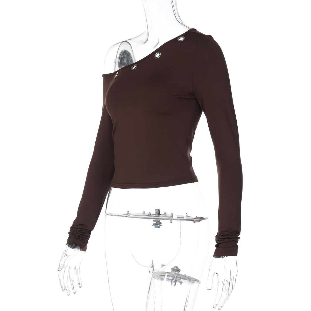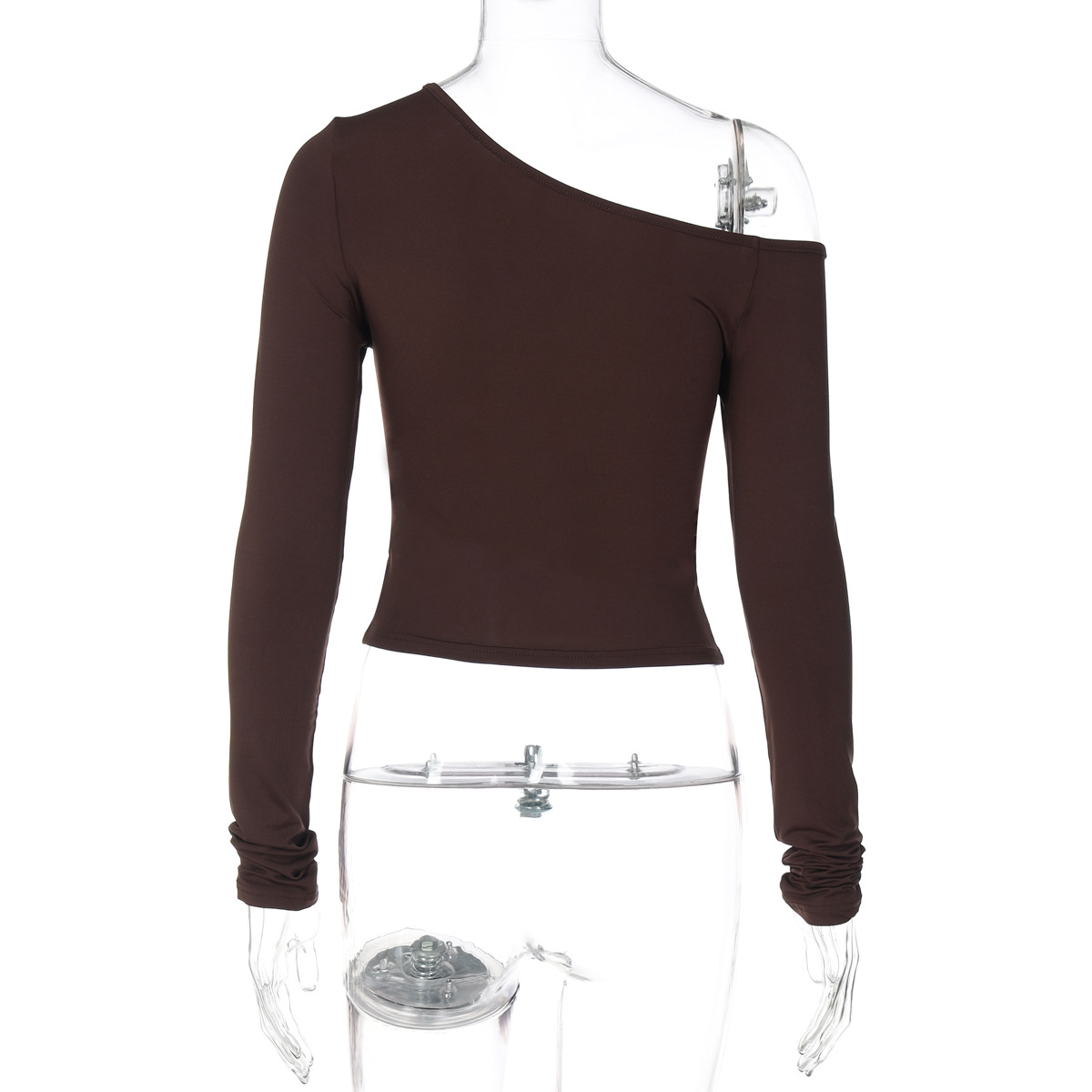 Winter One Shoulder Cold Shoulder Corns Solid Color Cropped Exposed Pullover Upper Clothes Long Sleeves T shirt