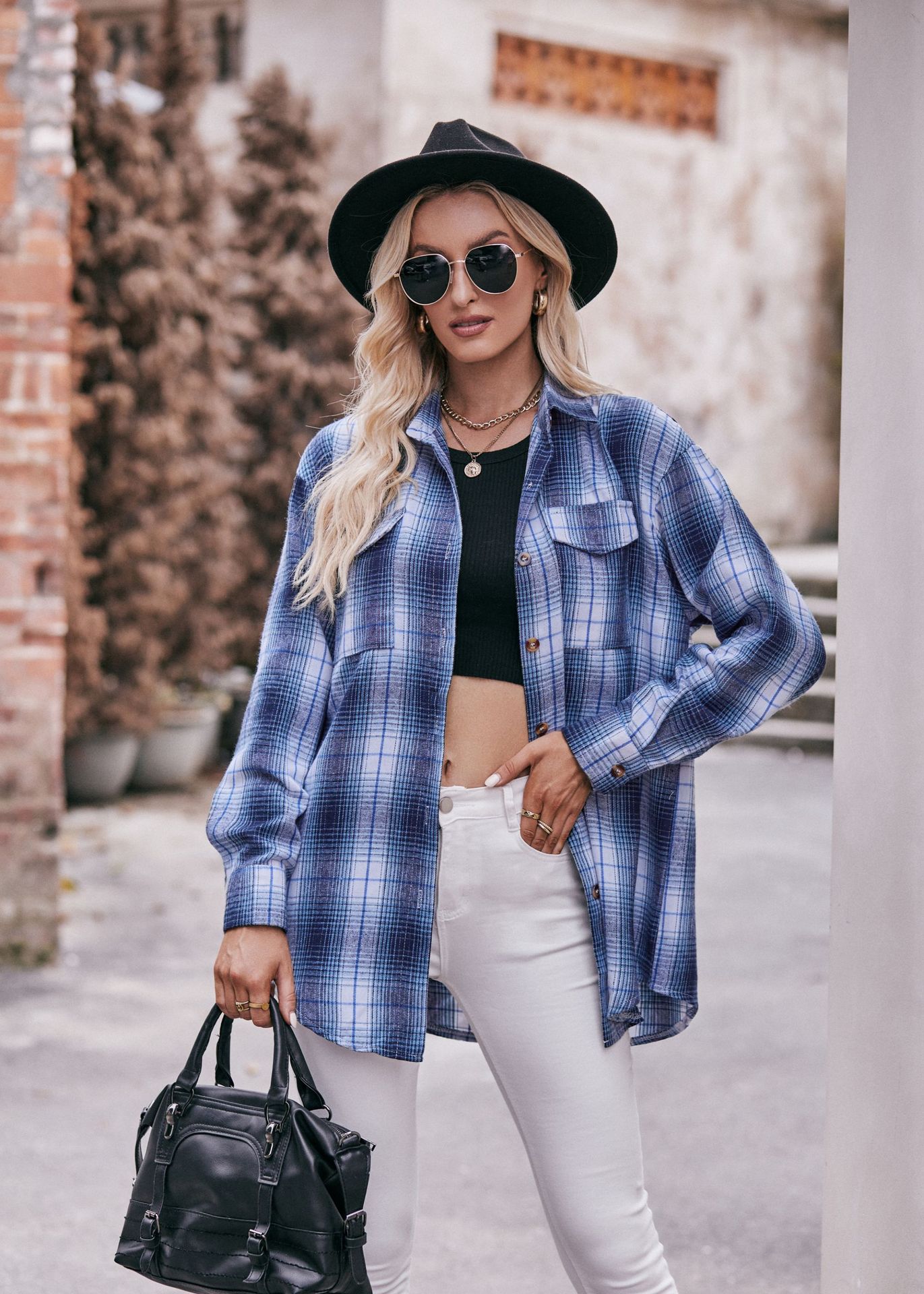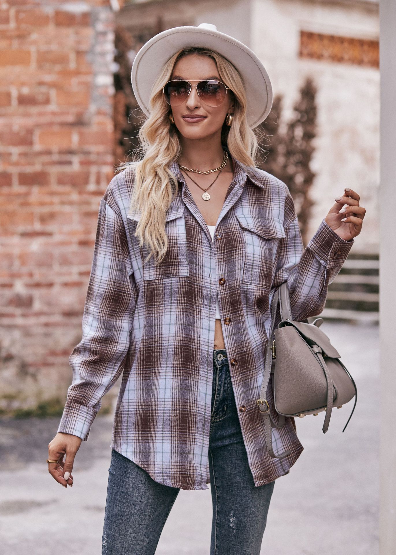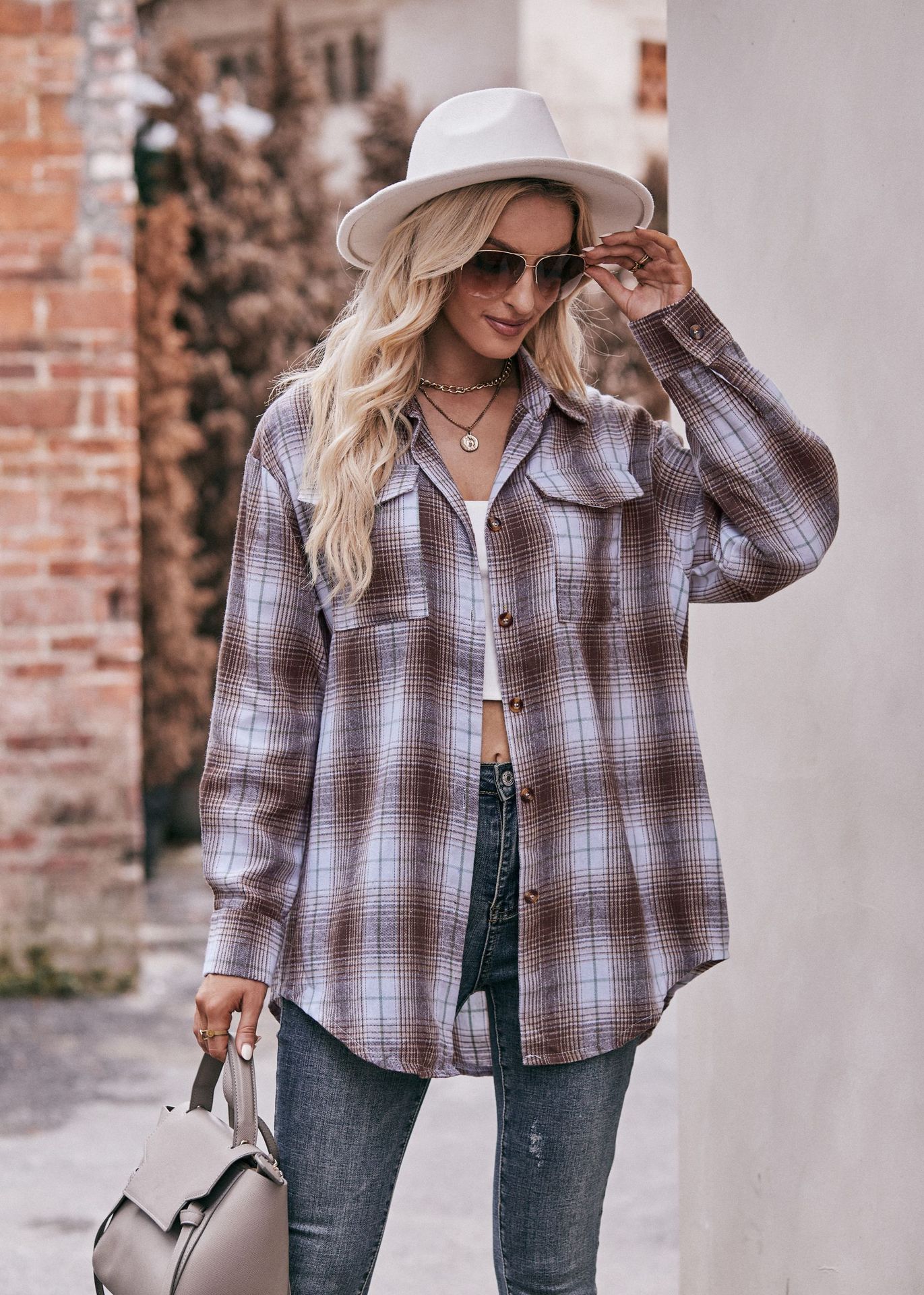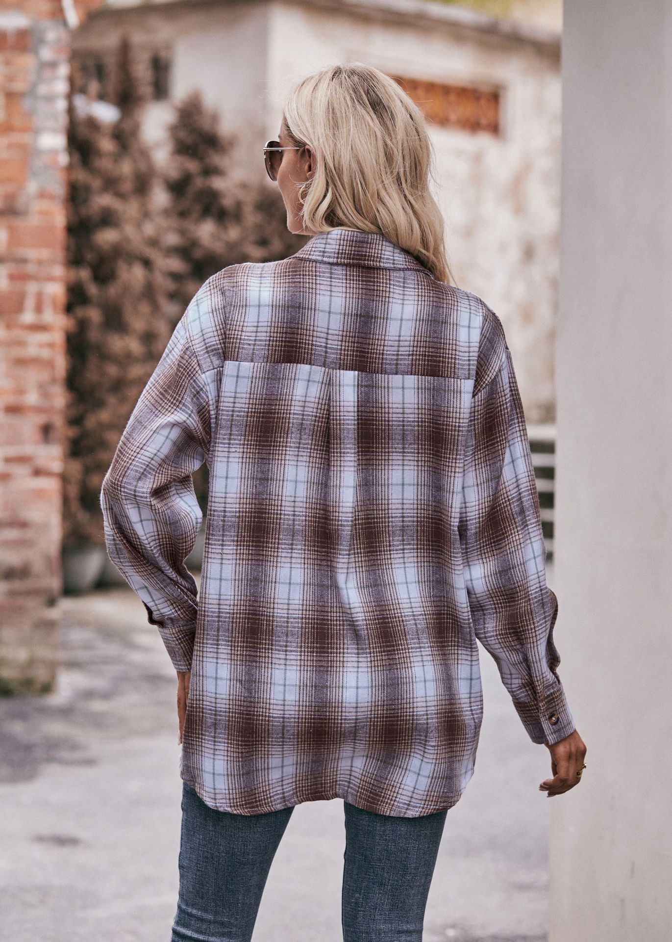 Women Autumn Winter Casual Oversize Loose Plaid Shirt