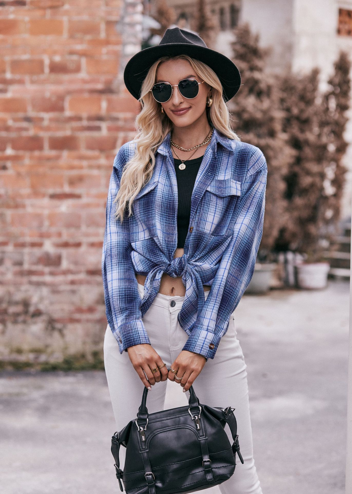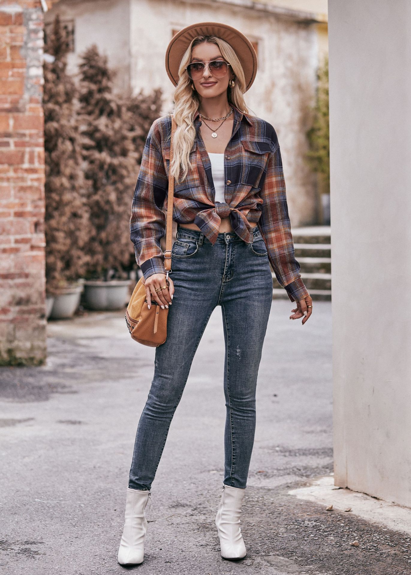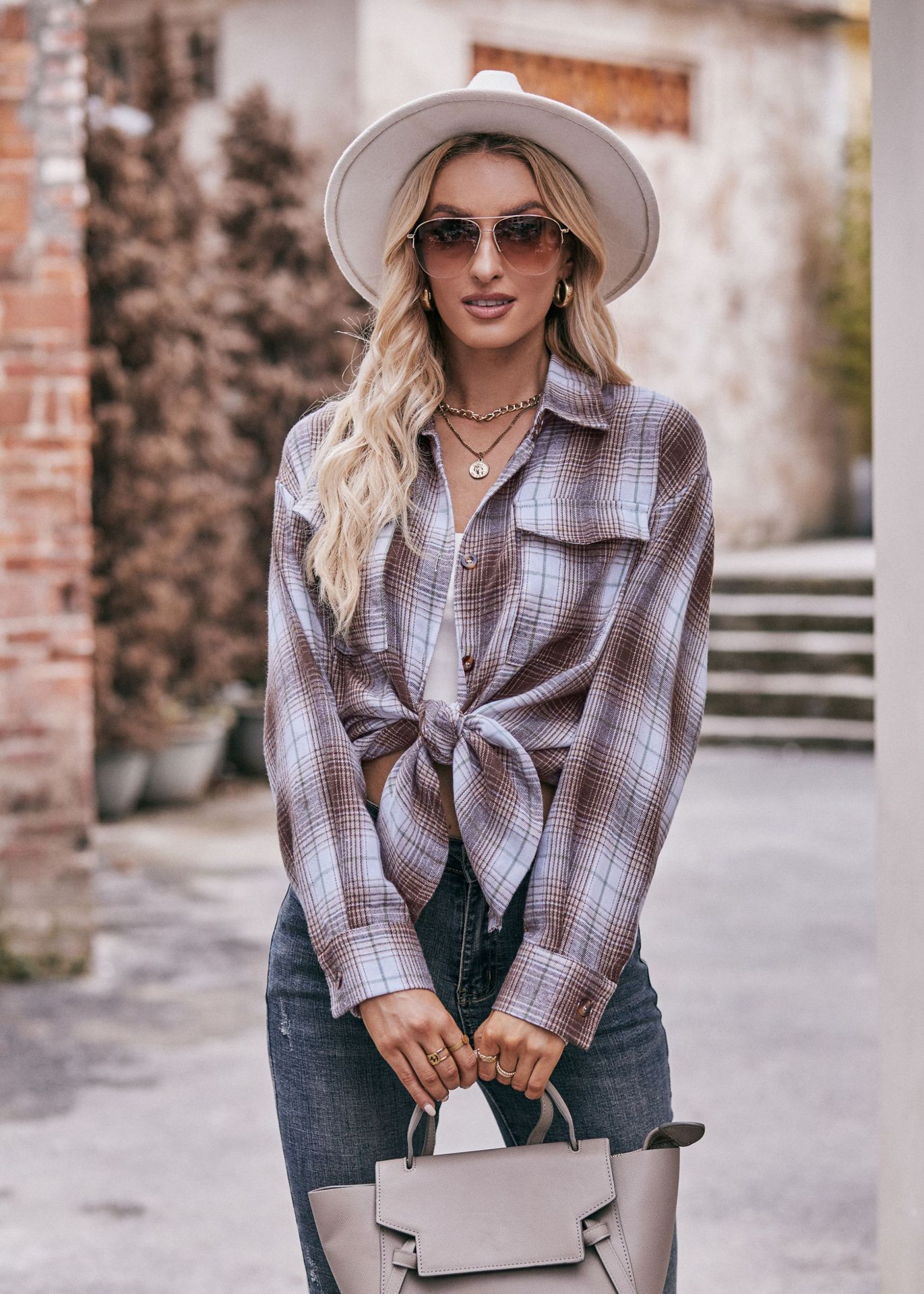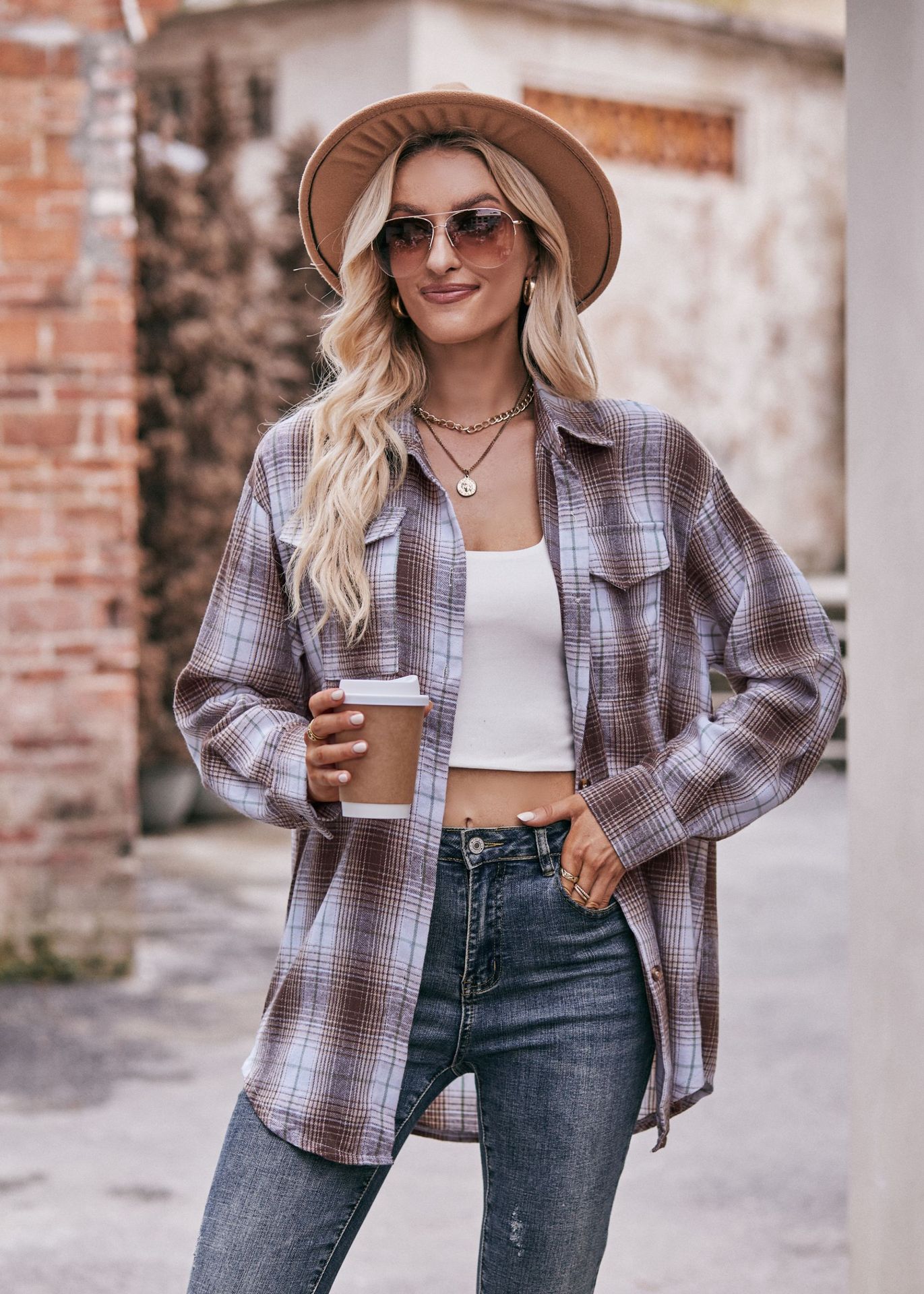 Women Autumn Winter Casual Oversize Loose Plaid Shirt