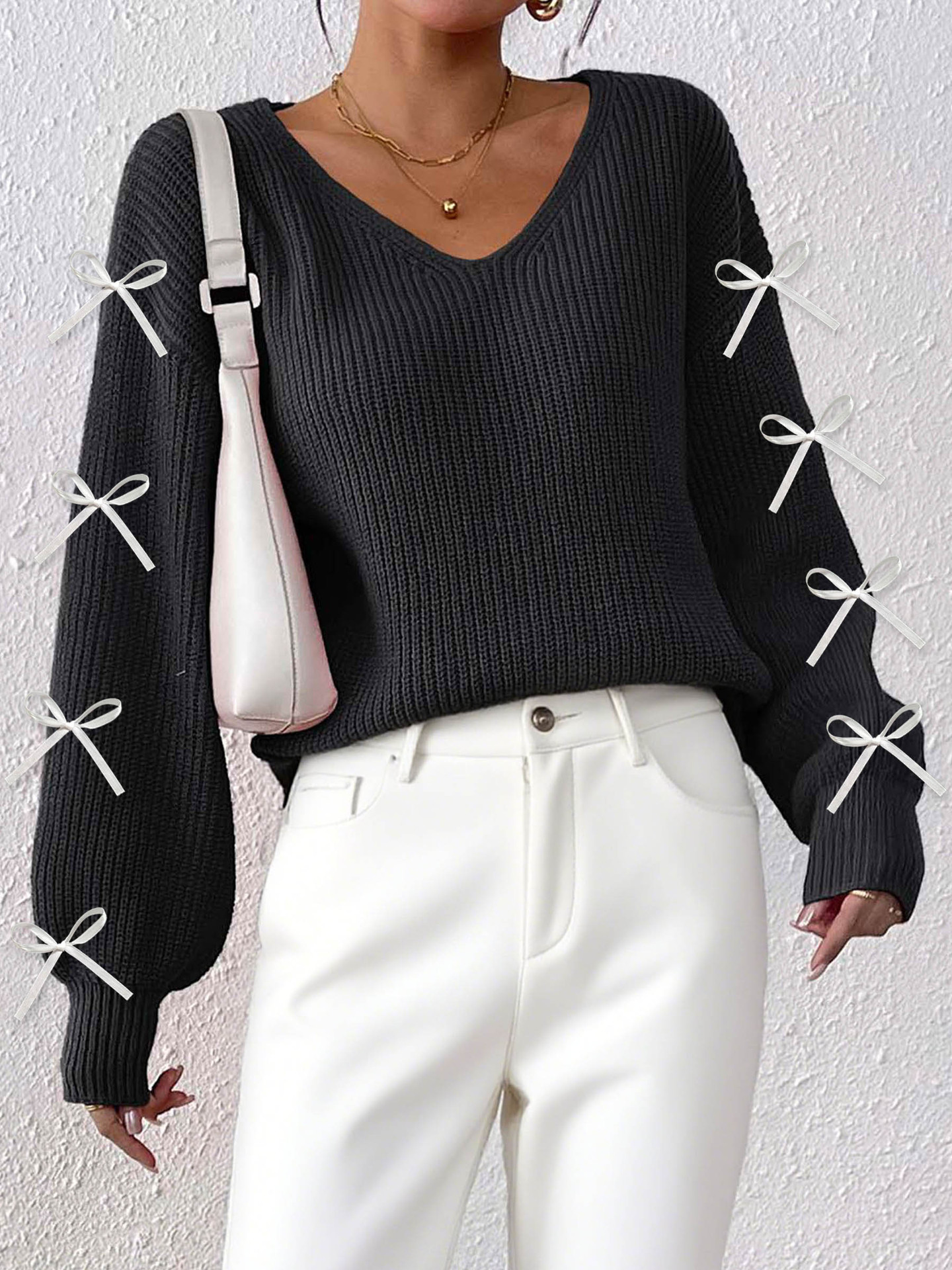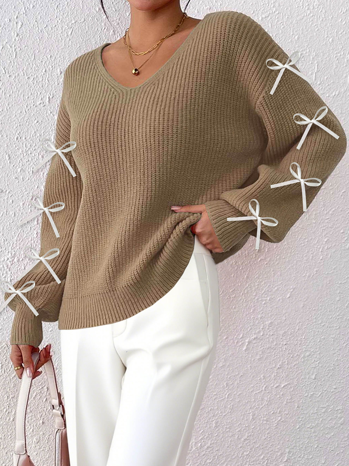 Women Autumn Winter Coat Women Clothing Ribbon Bow Decorative Woven Pullover