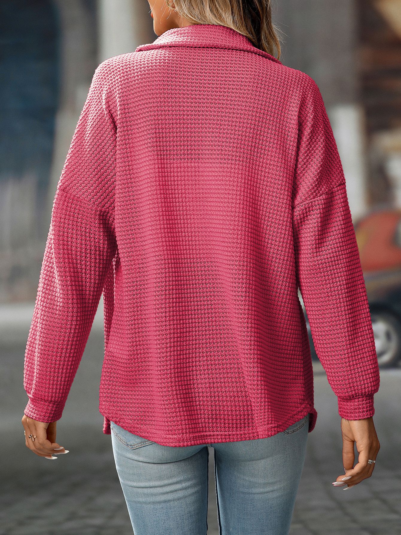 Women Autumn Winter Loose Waffle Casual Office All Matching Shirt