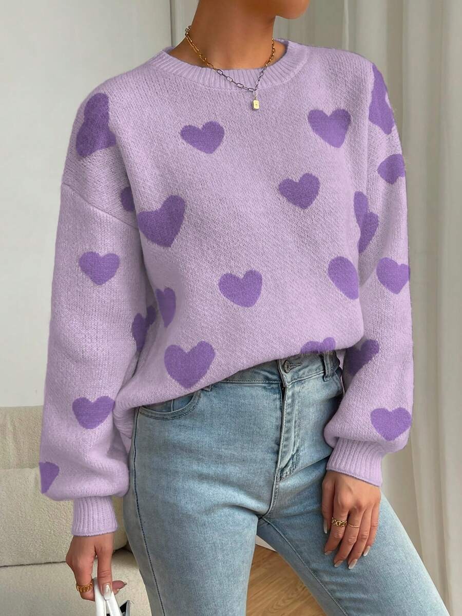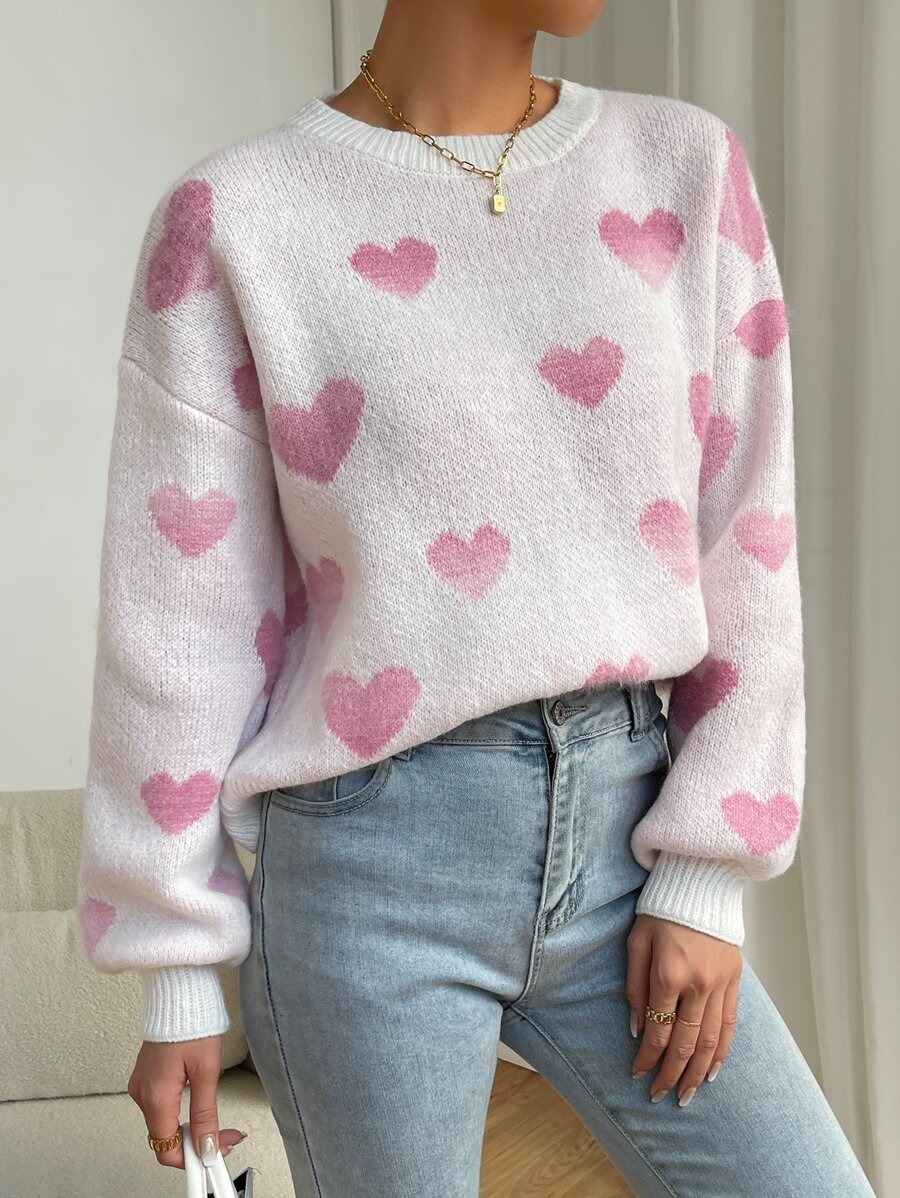 Women Autumn Winter Love Pullover Loose Casual Office round Neck Knitted Sweater for Women