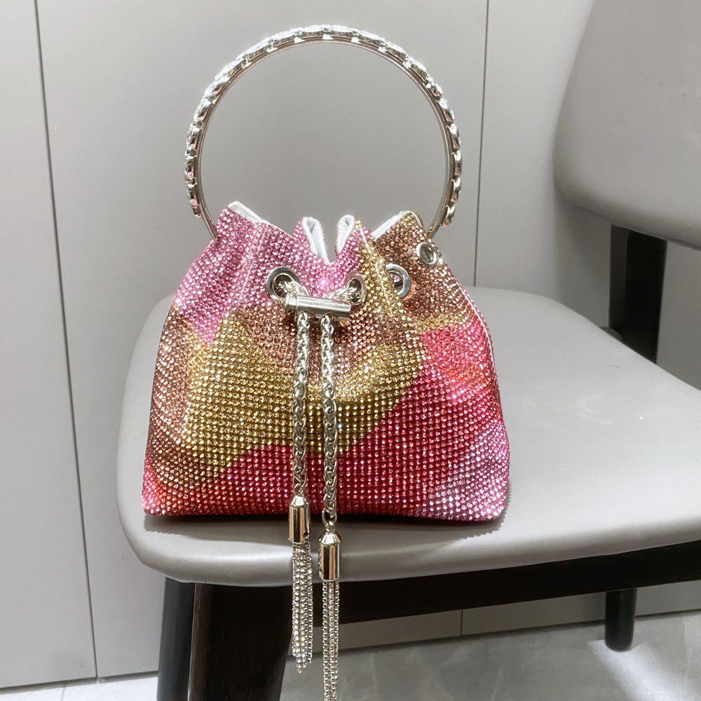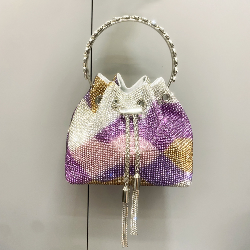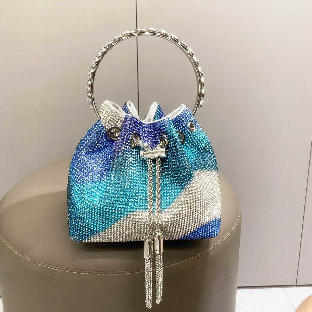 Women Bag Rhinestone Bucket Bag with Diamond Handle Handbag Shoulder Crossbody Small Bag Rhinestone Bag
