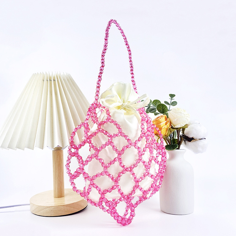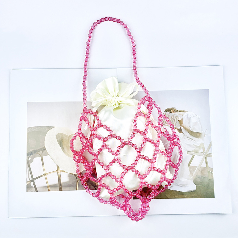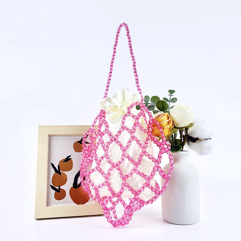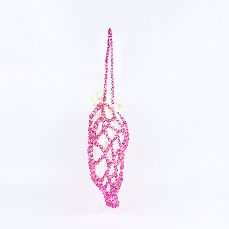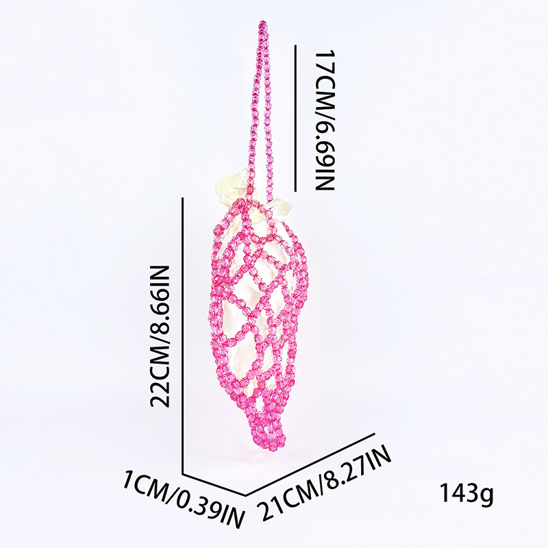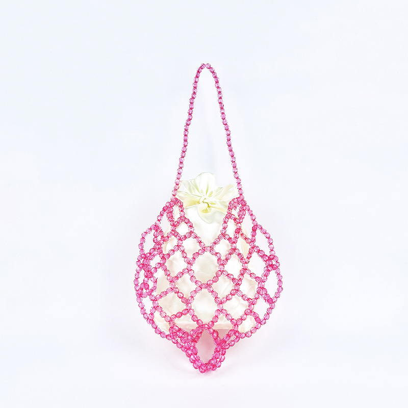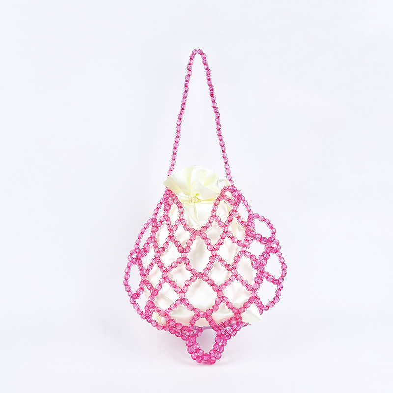 Women Casual Shoulder Bag Pink Openwork Cute Beaded Artistic Little Fairy Bag