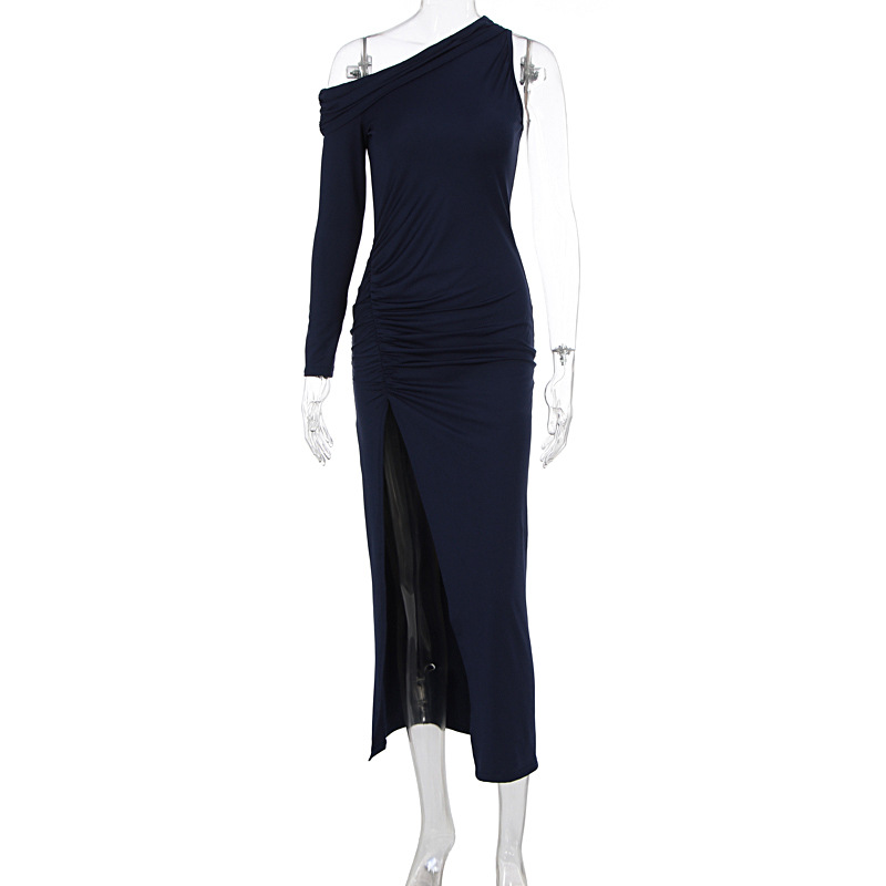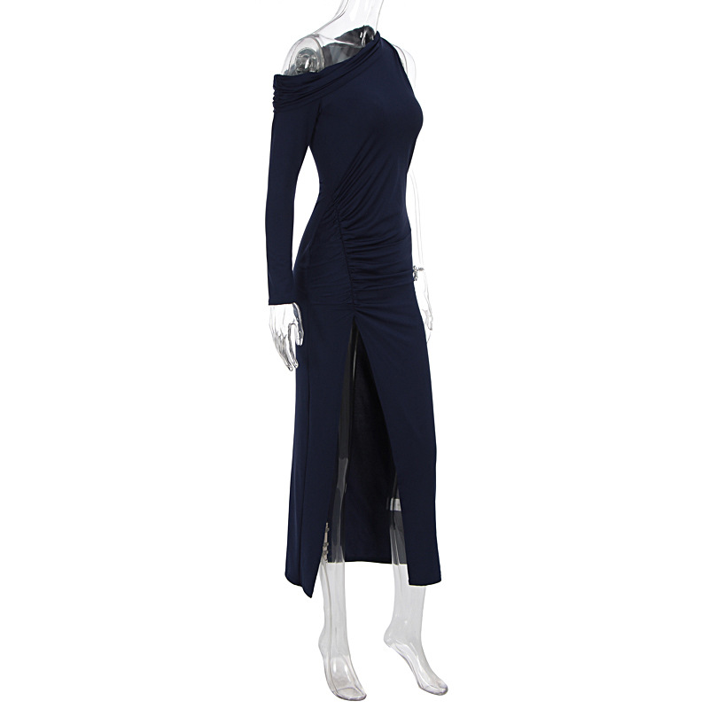 Women Clothes Summer Oblique Shoulder Long Sleeve Slim Fit Slit Dress